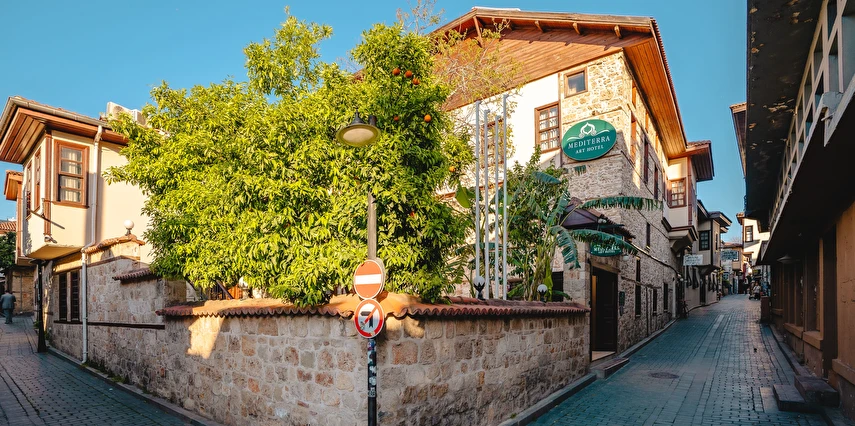 Mediterra Art Hotel, Antalya’nın tarihi Kaleiçi bölgesinde yer alan şık ve otantik bir butik oteldir. Kaleiçi’nin tarihî dokusuyla uyumlu olarak restore edilen Osmanlı tarzı bir yapıda hizmet verir ve konuklarına konforlu, estetik bir konaklama deneyimi sunar.