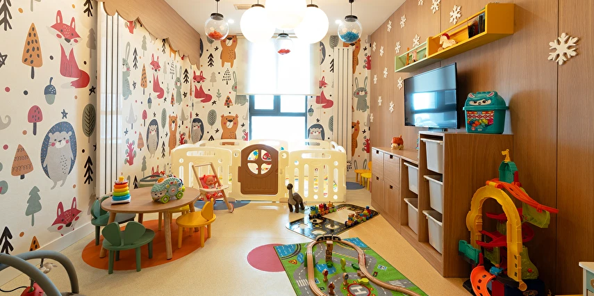4-7 yaş için artelier, lego odası, sinema odası ve oyun parkı mevcuttur.