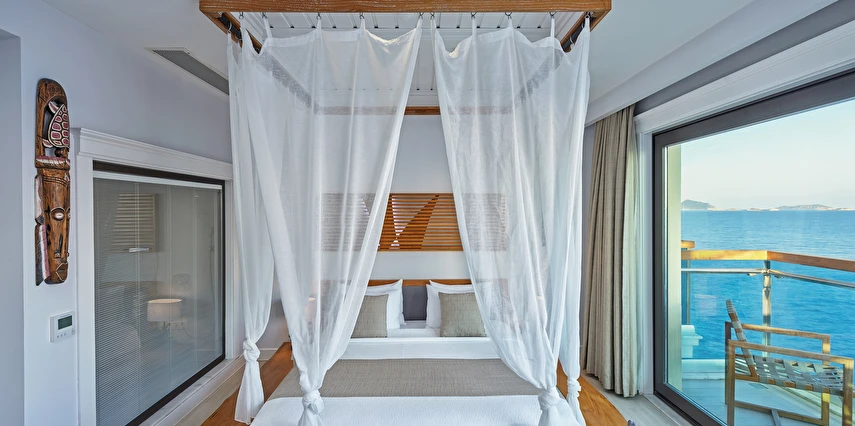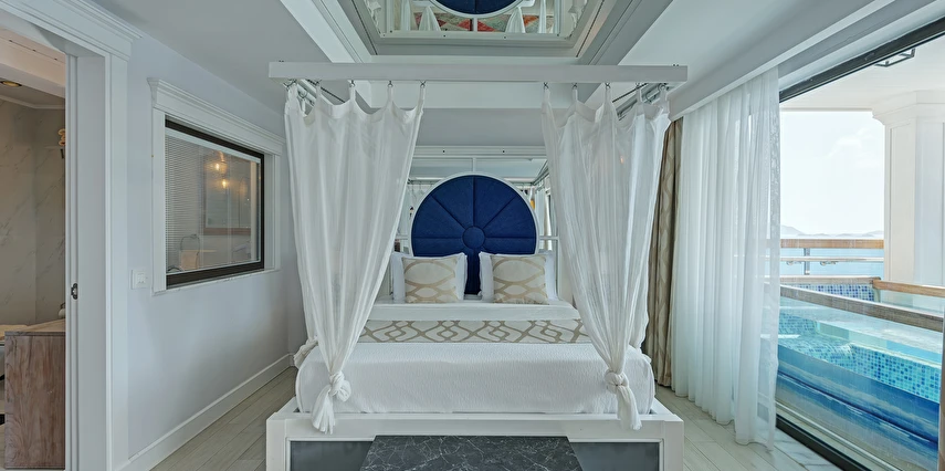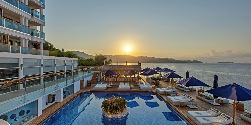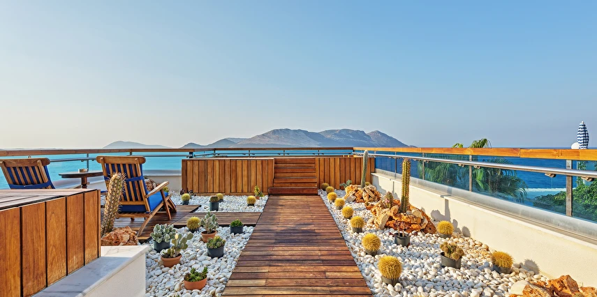 Akdeniz'e ve Meis Ada'sına bakan Meis Exclusive Hotel'de kendine ait deniz platformu (plaj) ve açık yüzme havuzu vardır. Deniz manzaralı superior odalarımızın haricindeki odaların balkonunda jakuzi mevcuttur.