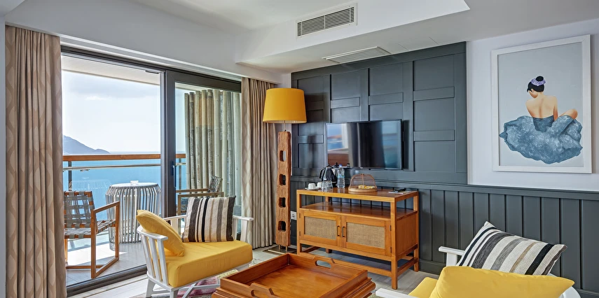 Tesiste açık havuz, özel plaj ve balkonlu odalar bulunur.