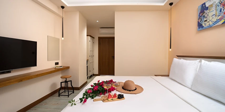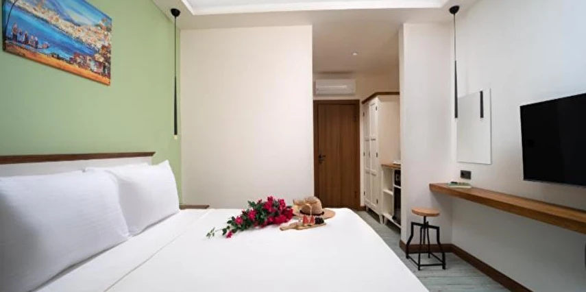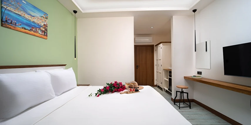 Sade ama şık bir şekilde dekore edilmiş odalarında klima, minibar ve konforlu yatak gibi modern olanaklar sunan tesis, misafirlerinin evindeymiş gibi hissetmesini sağlar. Sabahları dahil edilen zengin kahvaltı ile güne enerjik bir başlangıç yapabilir, teras ve bahçe gibi ortak alanlarda dinlenebilirsiniz.