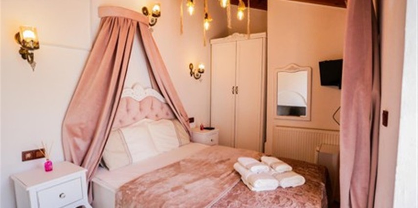 Bin bir emekle ve sevgiyle yeniden dekore edilen 5 oda, Osmanlı motiflerinin mistik tarzda harmanlanmasıyla dekore edilmiştir.