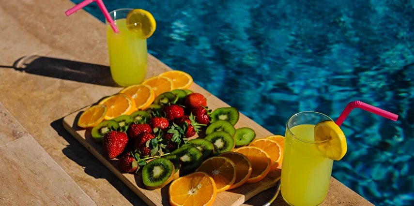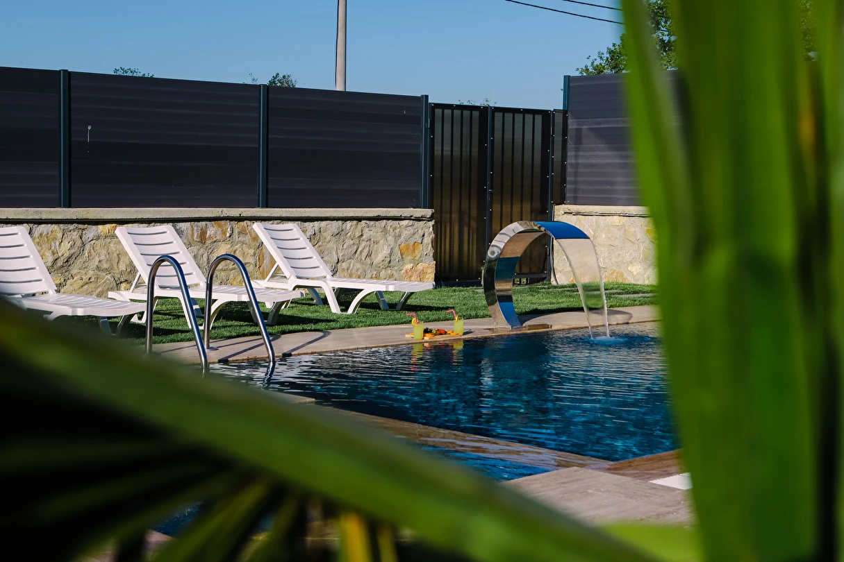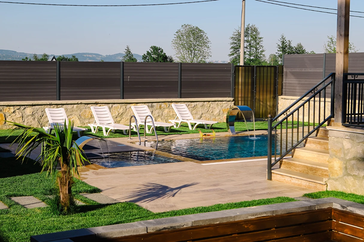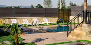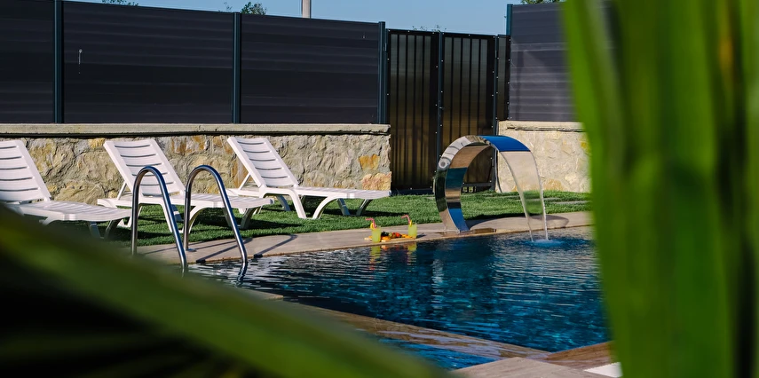 - Isıtmalı havuz (3,5 m x 7 m - 1,50 m - derinlik) ve ısıtmalı çocuk havuzu (1,50 m x 1,50 m - 40 cm derinlik)