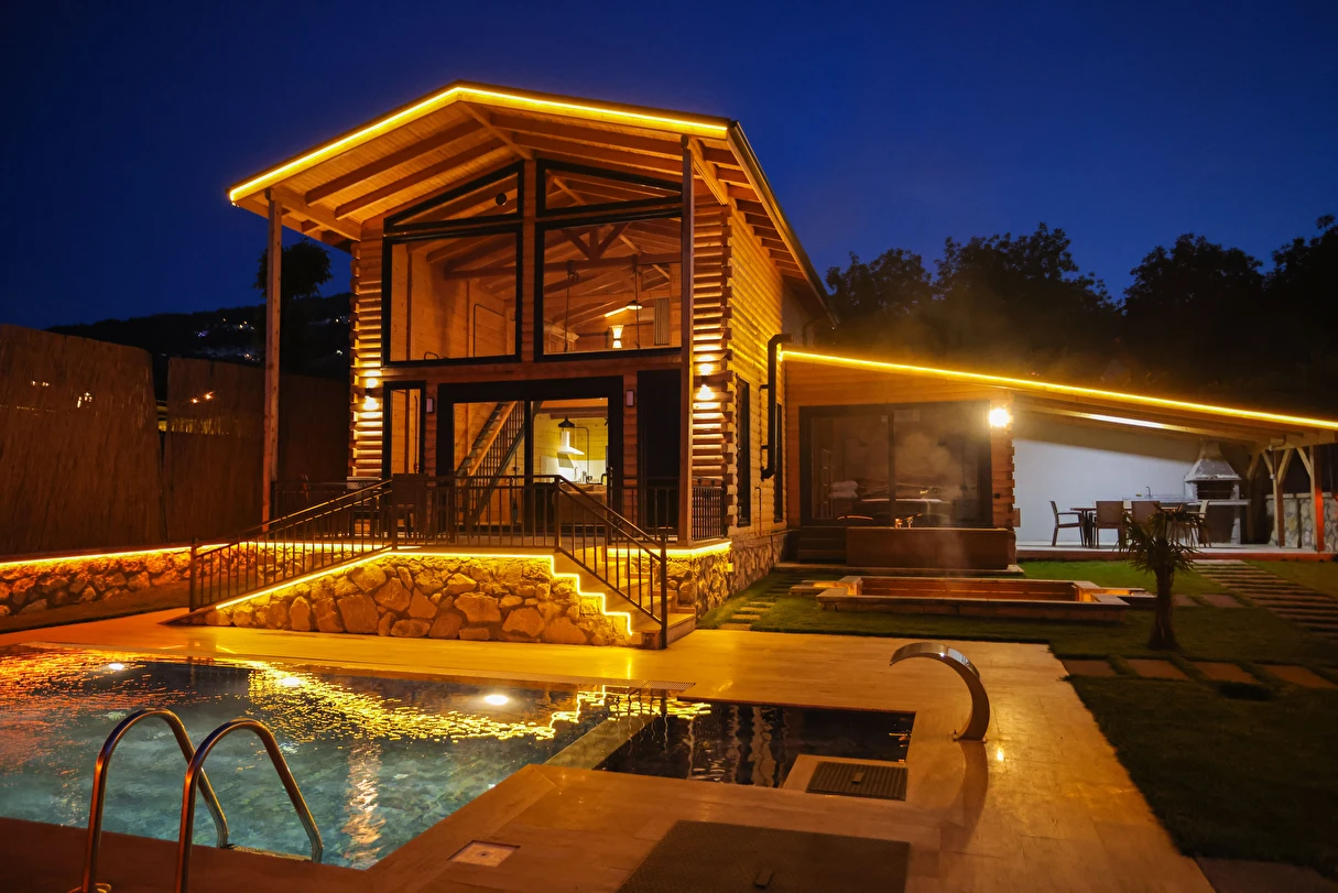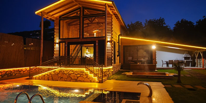 - Dış mekanda sauna, jakuzi, ateş çukuru, kapalı barbekü alanı