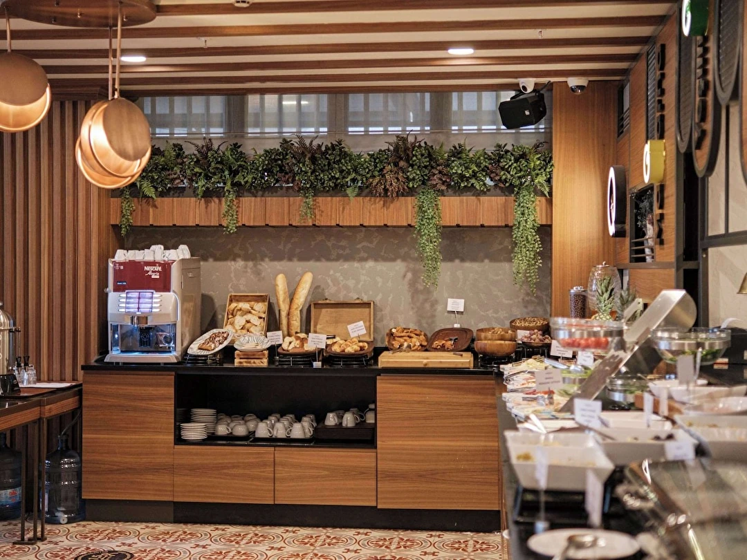 Otel, her sabah konuklarına zengin seçeneklerden oluşan açık büfe kahvaltı sunuyor. Menüde vejetaryen ve vegan yemek alternatifleri de bulunuyor. Gün boyu hizmet veren restoranda dünya mutfaklarından lezzetler denemek mümkün. Tesiste snack bar, bar ve cafe de yer alıyor. Konuklar, istedikleri zaman sıcak veya soğuk içecekler sipariş edebiliyor. Dileyen misafirler tesis civarında yer alan pek çok restoran ve cafeyi keşfederek yerel lezzetlerin tadına bakabiliyor. Ayrıca günün belirli saatlerinde odaya yemek servisi hizmeti de sunuluyor.