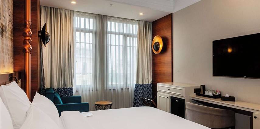 Daha Fazla Gösterİstanbul’un Fatih ilçesinde konumlanan Mercure İstanbul Sirkeci, konforlu ve lüks hizmet anlayışıyla konuklarını ağırlıyor. Şehrin ilgi çekici tarihi mekanlarına elverişli bir konumda bulunan tesis, kültür turizmine meraklı konukların tercihi oluyor. 150 yıllık tarihi bir binada bulunan otel, yenilenmiş mimarisi ile ziyaretçilerine üst düzey bir deneyim vadediyor.