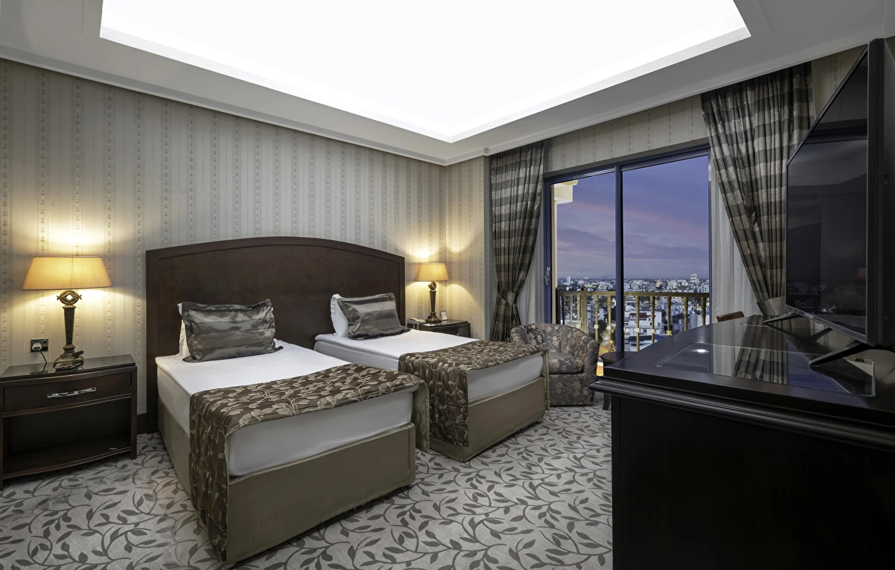 Şehrin merkezinde, Ercan Havalimanı’na sadece 25 km uzaklıkta yer alan otel; konforlu odaları, seçkin restoranları, üstü açılıp kapanabilen yüzme havuzu ve Uzakdoğu esintili SPA’sıyla hem iş hem tatil konukları için mükemmel bir adres.