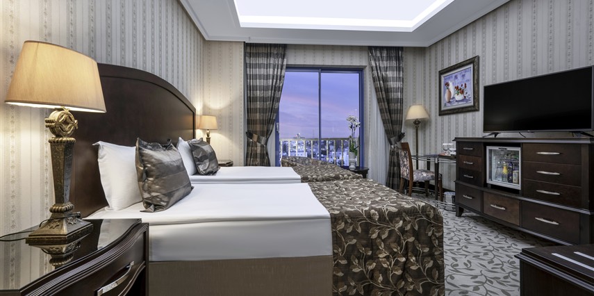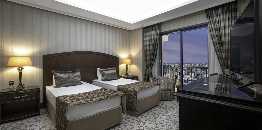Standart oda: French veya twin yatak seçenekleri bulunan odalar halı kaplı zemine sahiptir. Fransız balkonlu ya da balkonsuz ve sigara içilmeyen oda seçenekleri mevcuttur.