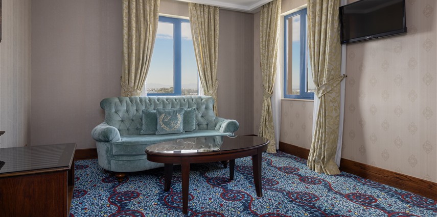 Suite oda: Bütün suite odalarda french yatak bulunmaktadır. Bir yatak odası ve birleşik salondan oluşan odalarda halı kaplı zemin mevcuttur. Sigara içilmeyen oda seçenekleri bulunmaktadır.
