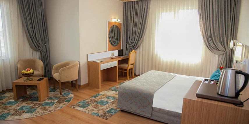 Daha Fazla GösterTarihi İpekyolu'nun dünyaya açılan penceresi GAP'ın parlayan yıldızı, Gaziantep'teki eviniz Metgold Otel Gaziantep ve bölge turizmine hizmet vermektedir. Bir cephesi kale bir cephesi kültür yolu manzaralı mükemmel bir konuma sahip, toplam 84 oda, 168 yatak kapasiteli, 160 kişilik birinci sınıf restoran 210 kişilik çok amaçlı toplantı salonu, oyun salonu, sauna - Türk Hamamı, masaj salonu, bay - bayan kuaförü, nostalji kafe ve 100 araçlık otoparkıyla hizmet veren otelimiz; havalimanına 20 dakika şehirler arası otobüs terminaline 10 dakika, yeni açılacak olan hızlı tren hattına 3 dakika, Zeugma Mozaik Müzesine 5 dakika mesafede olup, Gaziantep Kalesi, Tarihi Tahmis Kahvesi, Tütün Hanı, Bakırcılar Çarşısına yürüme mesafesindedir. Özellikle tarihi kültür yolundaki tek dört yıldızlı otel olarak hizmet vermiş olan 10 yıllık tecrübesi ve son teknolojik sistemlerle yeni dizayn edilen ve UNESCO tarafından Gastronomi şehri olarak ilan edilen tarih, kültür şehri ve lezzetlerin başkenti Gaziantep'teki eviniz Metgold Otel yeni hizmet anlayışımız ile siz değerli misafirlerimize hizmet vermektedir.