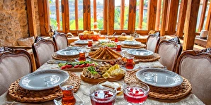 Birçoğu kendi organik mahsulümüz olan özel kahvaltılıkları ile güne merhaba diyeceksiniz.