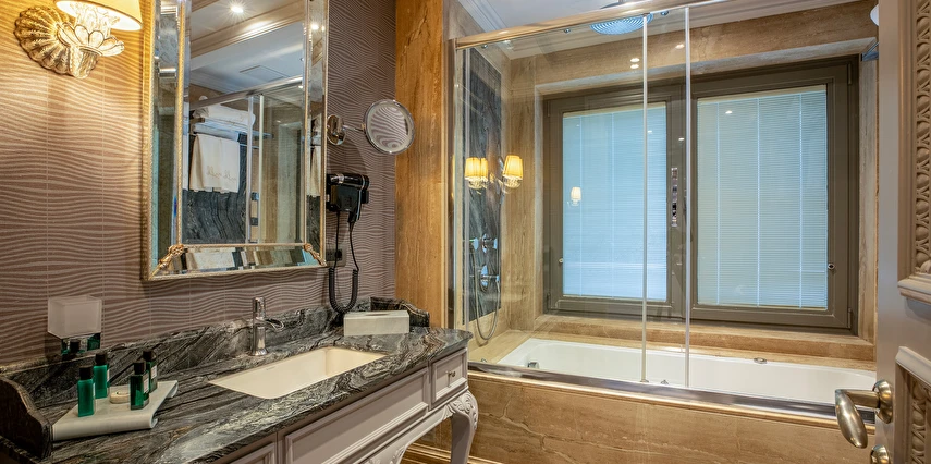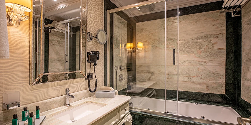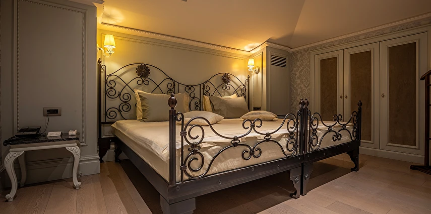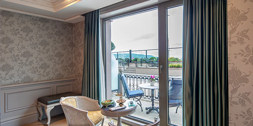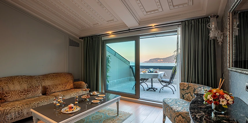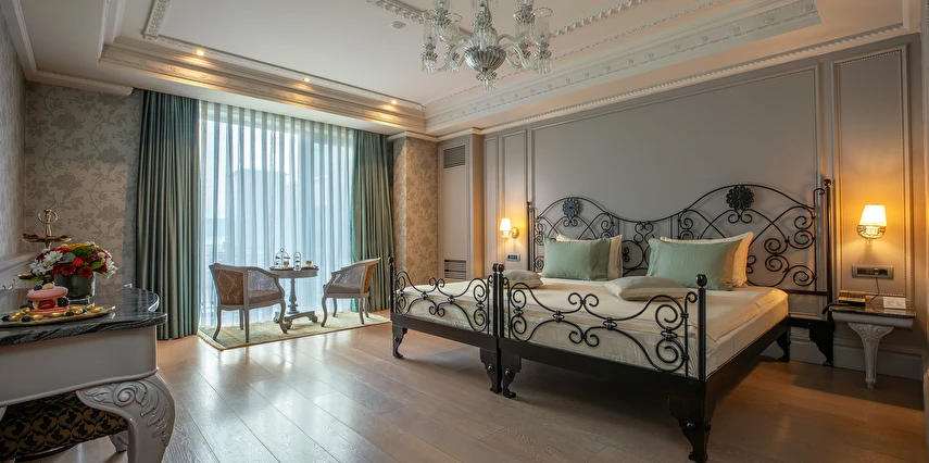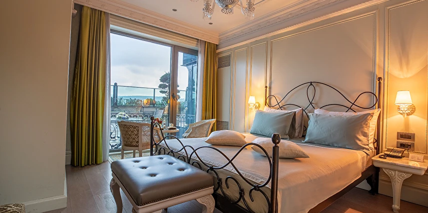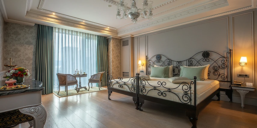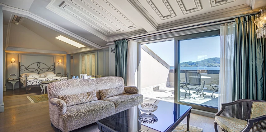 Ferforje yatak başlıkları ve avizeler bulunan zarif odalarda 42 inç düz ekran TV, WiFi erişimi, mini buzdolabı, jakuzi ve çay-kahve yapma imkanı yer alır. Ayrıca balkon veya teras vardır. Üst sınıf odalar Boğaz manzaralıdır. Süitler oturma alanına sahiptir. Oda servisi 7/24 sunulur.