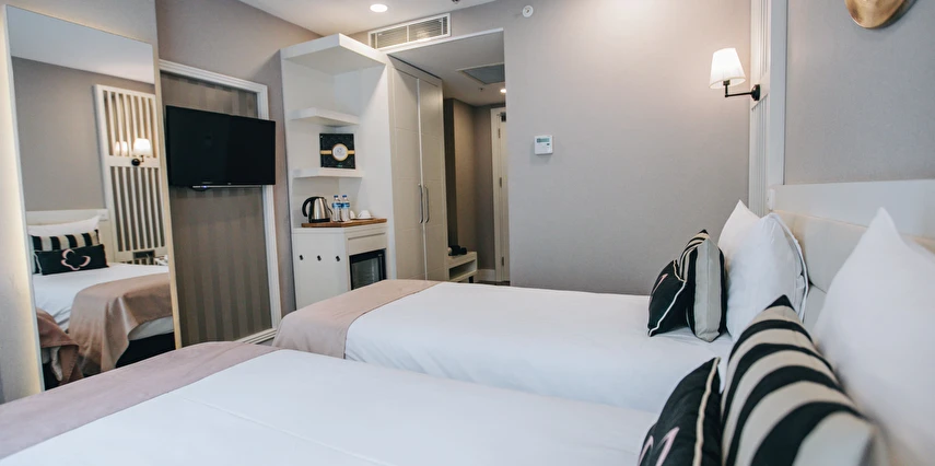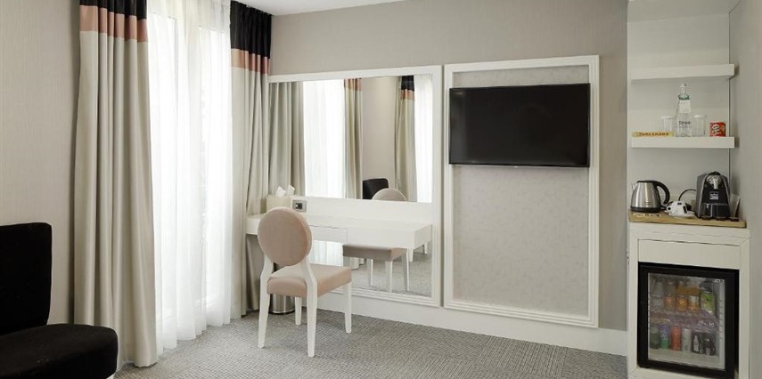 Daha Fazla Göster2014 yılı Ağustos ayında kapılarını açan Mia Berre Hotels Fulya kusursuz hizmet anlayışı ile Güncel Yangın ve Deprem yönetmeliklerine uygunluk belgeli olarak misafirlerini ağırlıyor! Mia Berre Hotels, Fulya’da olması itibari ile, iş merkezleri, kongre merkezleri, sağlık kuruluşları ve Nişantaşı, Taksim gibi Türkiye’nin en renkli alışveriş caddelerine, kültür-sanat merkezlerine yakınlığı sayesinde eşsiz bir lokasyondadır. İstanbul’un en çok tercih edilen ulaşım araçları, Metro ve Metrobüs’e ise sadece 5 dakika mesafededir. Türk misafirperverliğini temel esas alan Mia Berre Hotels bünyesinde yer alan Mia Berre Restaurant dünya mutfağına sahip menüsü ile 7 gün 24 saat misafirlerine hizmet vermektedir. 106 oda ve 188 yatak kapasitesi ile hizmet veren Mia Berre Hotels donanımlı salonları sayesinde kurumsal toplantılar için de olanak sağlamaktadır. Mia Berre Hotelde klimalı odaları şık ve modern bir iç tasarıma sahiptir. Tüm odalarda çay-kahve yapma imkanı, ücretsiz Wi-Fi ve LCD TV’ler ve minibar vardır.