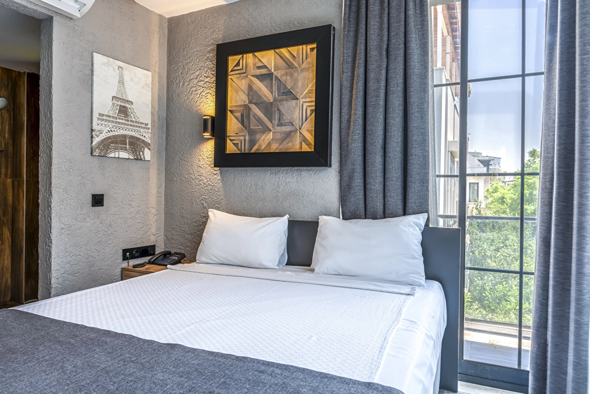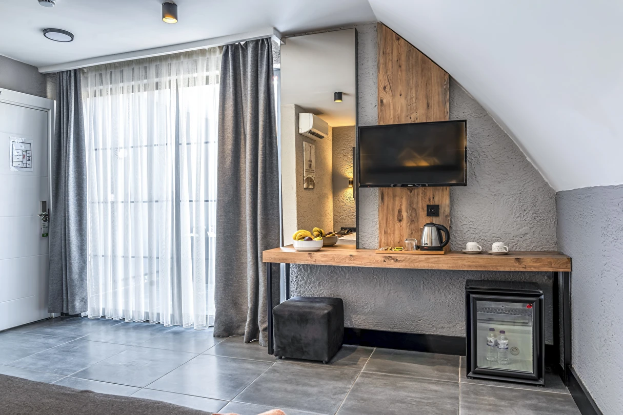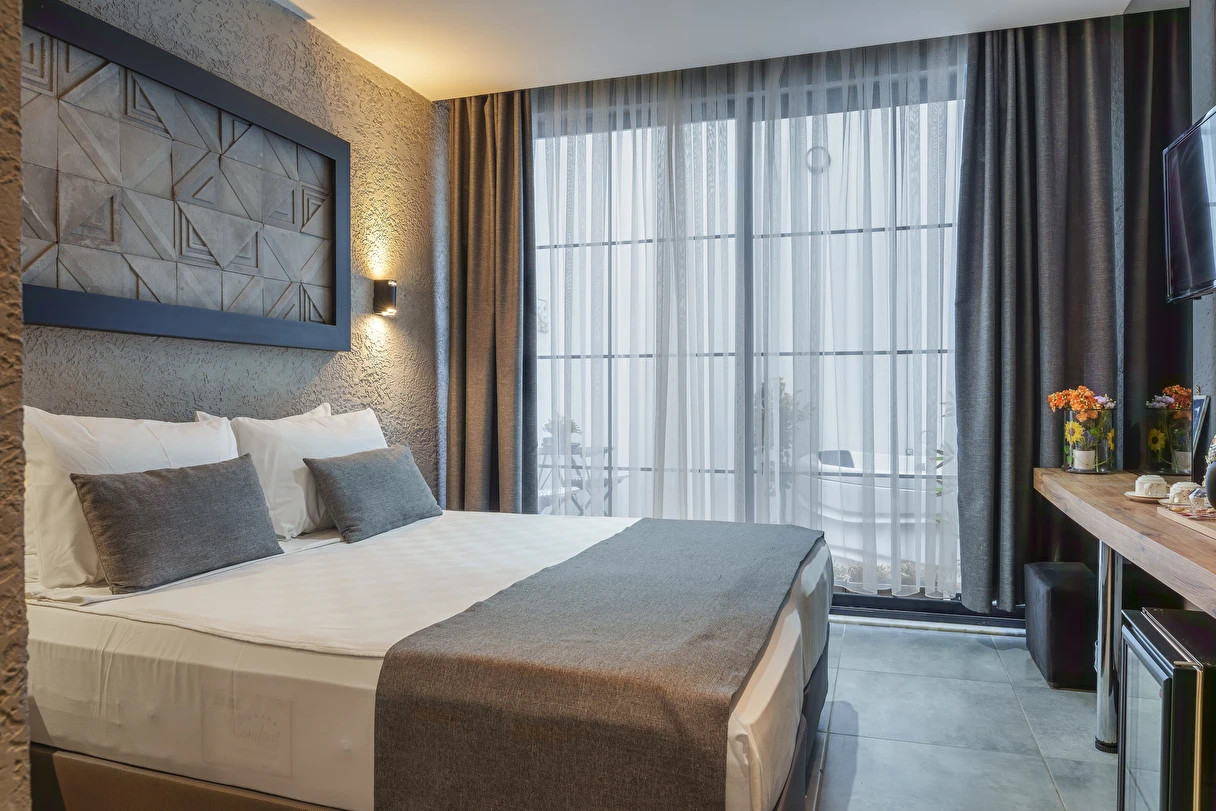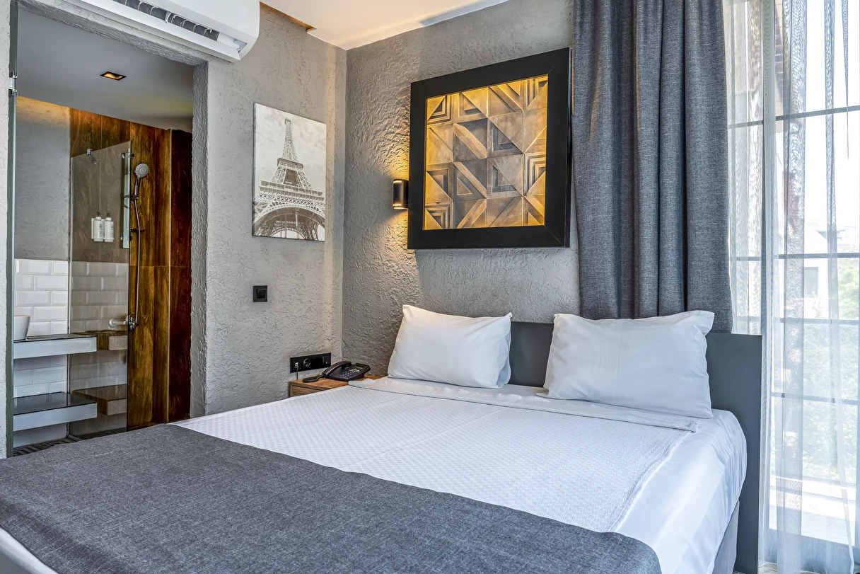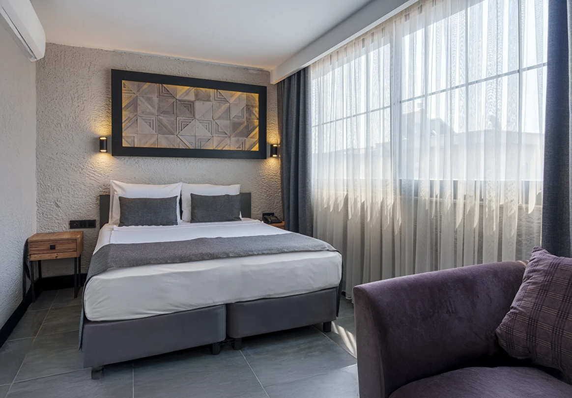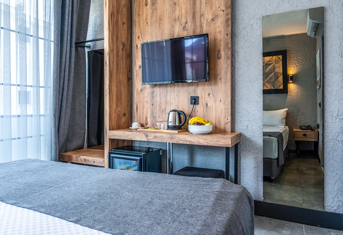 Mielo Lara’nın her odası, modern gezginlerin ihtiyaçları doğrultusunda, minimalist ve şık bir tarzda dekore edilmiştir. Konaklama deneyiminizi zirveye taşıyan özellikler: