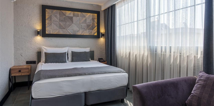 Lüks Oda Seçenekleri: Ferah, aydınlık ve en kaliteli tekstil ürünleriyle donatılmış Standart ve Deluxe odalar.