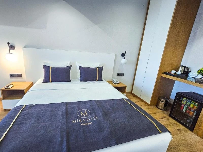 İzmir’de hem iş hem de turistlik seyahatler için konaklama imkanı sunan Mira Hotel Küçükyalı, misafirlerini Junior Suit, ve King Suit odalarda ağırlıyor.