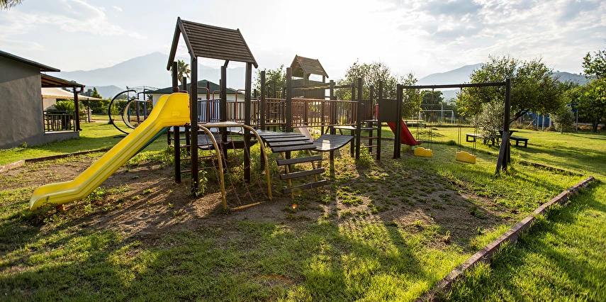Tesiste 2 bantlı yetişkin kaydırağı, tek bantlı çocuk su kaydırağı mevcuttur.