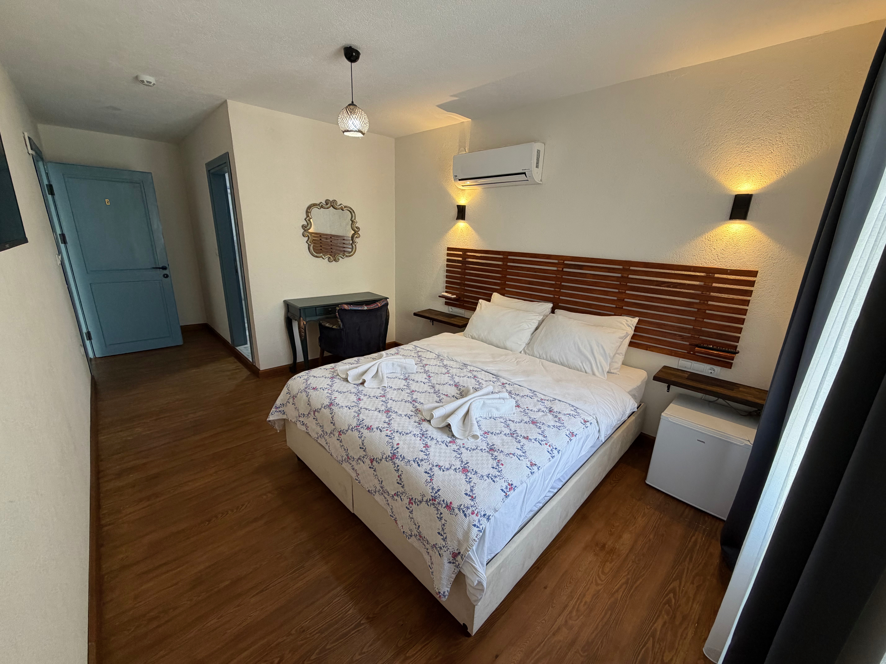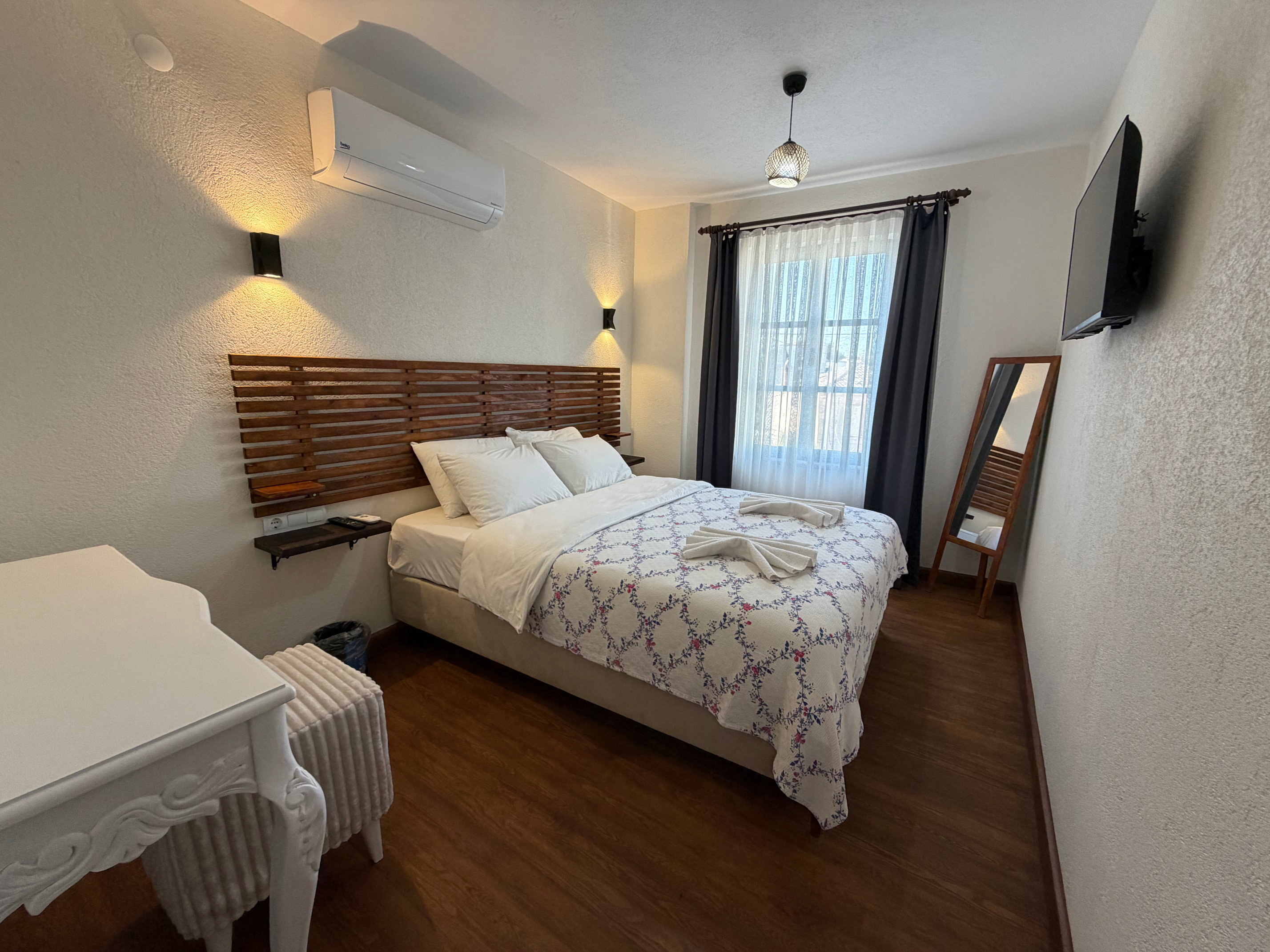 Tesisimizde farklı ihtiyaçlara hitap eden oda seçenekleri bulunmaktadır. 16 m² genişliğindeki Standart odalarımız, sigara içilmeyen yapısı ve maksimum 2 yetişkin kapasitesiyle sade ve konforlu bir konaklama sunar. 19 m² büyüklüğündeki Suit odalarımız ise 2 yetişkin ve 1 çocuk kapasitesiyle daha geniş bir alan arayan misafirler için idealdir. Ekonomik konaklama tercih edenler için sunulan 16 m² büyüklüğündeki Eko odalarımız da yine 2 yetişkin kapasitesiyle rahat ve işlevsel bir alternatif oluşturur. Tüm odalarımızda sigara içilmemekte olup, misafirlerimizin konforu ön planda tutulmaktadır.