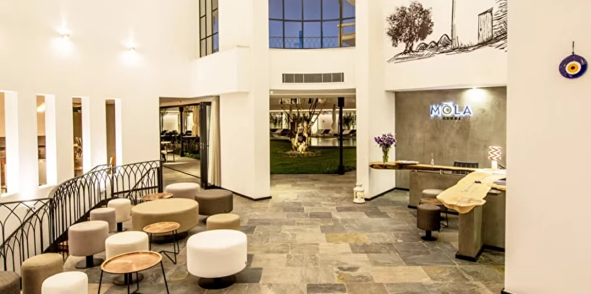 İsmini, bölgeyle özdeşleşen değirmenlerin Latince'si olan "MŎLA"dan alan tesis, mimarisiyle de değirmen konseptini yaşatırken, tamamen çevre dostu malzemelerle yapılan binası ve doğa dostu ısıtma/soğutma özellikleri ile de farklılığını ortaya koyuyor. Yörenin en taze ve doğal ürünleriyle hazırlanan açık büfe Ege kahvaltı, Snack menüsüyle Bahçe Restoran, birbirinden özel kokteylleri ile Cunda değirmeni formunda tasarlanmış barlarla sizleri ağırlamaktan mutluluk duyacaklardır.