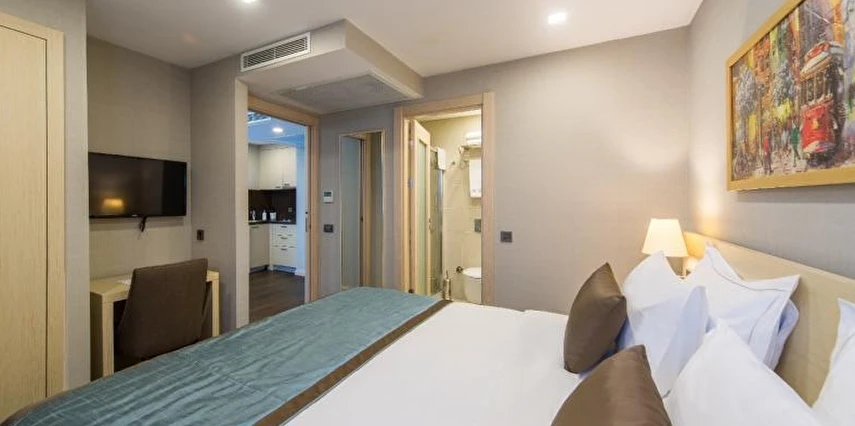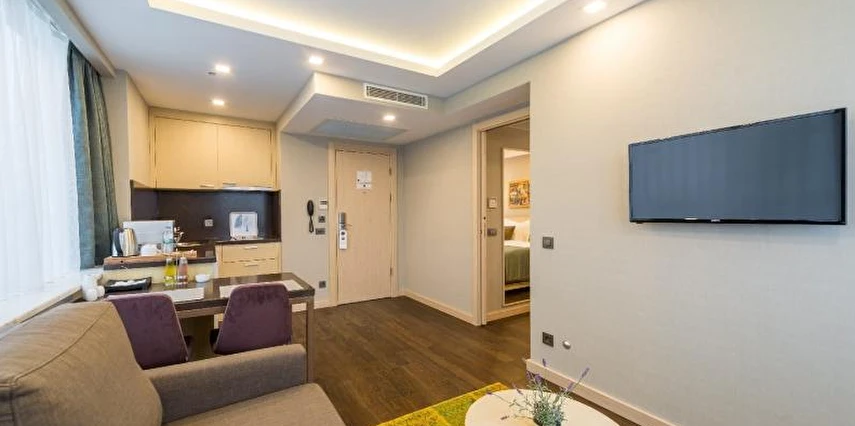 Daha Fazla GösterMolton Monapart Mecidiyeköy, evinizin konfor ve sıcaklığını İstanbul’un kalbinin attığı Mecidiyeköy’e taşıdığınızı düşünün. Kısa bir zaman önce bütünüyle yenilenen bir binanın göz alıcı 18 Otel Odası, 16 Suite Dairesinden birinde modern bir mutfakta yemek hazırlamanın, ferah bir odada dinlenmenin hayalini kurun...