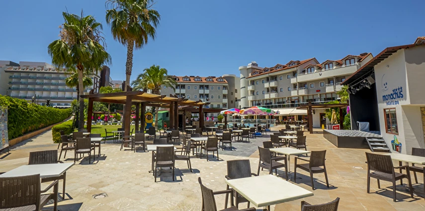 Sabah kahvaltısı öğle ve akşam yemekleri açık büfe olup tesisin belirlemiş olduğu saatler ve markalar dahilinde yerli içecekler 10:00 ile 24:00 saatleri arasında ücretsizdir. Tüm yabancı alkollü içecekler ve Türk kahvesi, 24:00 ile 10:00 saatleri arası barlardaki tüm içecekler, kokteyller, taze sıkılmış portakal suyu ücretlidir.