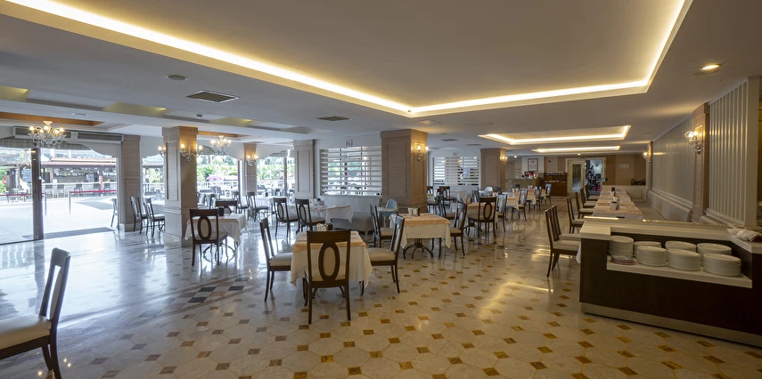 Ana restoranda akşam yemeğinde çocuk büfesi mevcutur. Ana restoranda taze sıkılmış portakal suyu ücretli olarak servis edilir. Ana restoranda mama sandalyesi ve özel çocuk alanı bulunur.