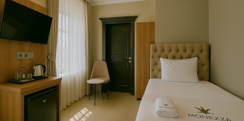 Daha Fazla GösterOtelimiz İstanbul’un gelişmiş semtlerinden biri olan Avcılar Cihangir mahallesi E-5 Yanyol üzerinde bulunmaktadır. -İstanbul Gelişim Üniversitesi kampüslerine yürüme mesafesi 1km, -Cihangir ve Mustafa Kemal Paşa Metrobüs duraklarına yürüme mesafesi 2 dakika -TÜYAP 9 km -Avcılar Sahile 2,5 km -İstanbul Havalimanına ulaşım sağlayan HAVAİST otobüs duraklarına yürüme mesafesi 10 dakika, -İstanbul Havalimanı 48 km, -İstanbul Üniversitesi Cerrahpaşa Avcılar Kampüsü 5 km, -Pelican AVM 800 metre, -İstanbul Yeşilköy CNR Fuar Merkezi 16 km, -İDTM İstanbul Dünya Ticaret Merkezi 16 km. -Torium AVM 3 km -Marmara Park AVM 6 km -Avcılar Hospital 500 metre - Aqua Florya 9 km Otelimiz İstanbul’un gelişmiş semtlerinden biri olan Avcılar Cihangir mahallesi E-5 Yanyol üzerinde bulunmaktadır. -İstanbul Gelişim Üniversitesi kampüslerine yürüme mesafesi 1km, -Cihangir ve Mustafa Kemal Paşa Metrobüs duraklarına yürüme mesafesi 2 dakika -TÜYAP 9 km -Avcılar Sahile 2,5 km -İstanbul Havalimanına ulaşım sağlayan HAVAİST otobüs duraklarına yürüme mesafesi 10 dakika, -İstanbul Havalimanı 48 km, -İstanbul Üniversitesi Cerrahpaşa Avcılar Kampüsü 5 km, -Pelican AVM 800 metre, -İstanbul Yeşilköy CNR Fuar Merkezi 16 km, -İDTM İstanbul Dünya Ticaret Merkezi 16 km. -Torium AVM 3 km -Marmara Park AVM 6 km -Avcılar Hospital 500 metre - Aqua Florya 9 km Genişlik ve Ferahlığın ön plana çıktığı Monezza Hotel’de 17-40 m2 arasında değişen balkonlu ve teraslı odalar mevcuttur.