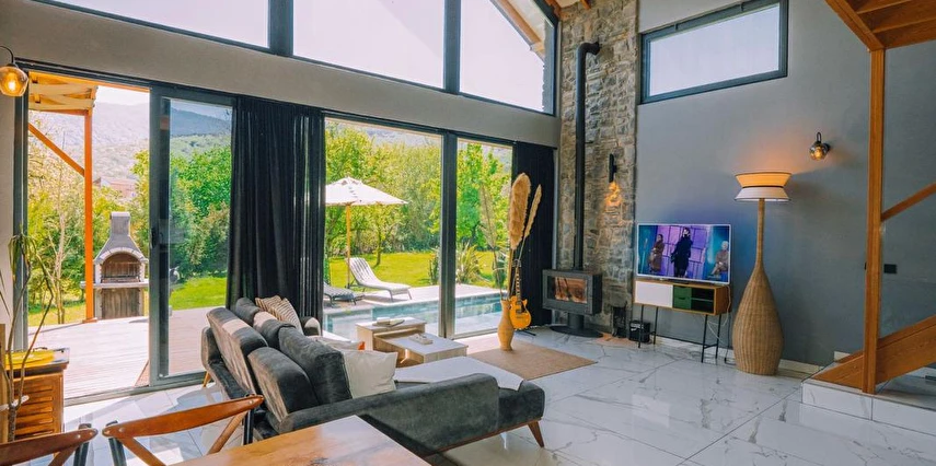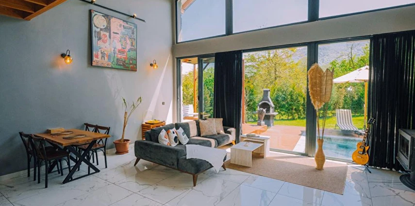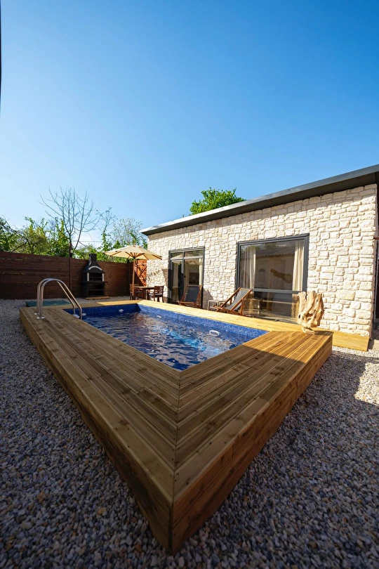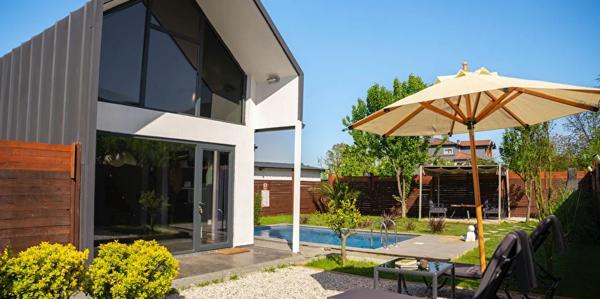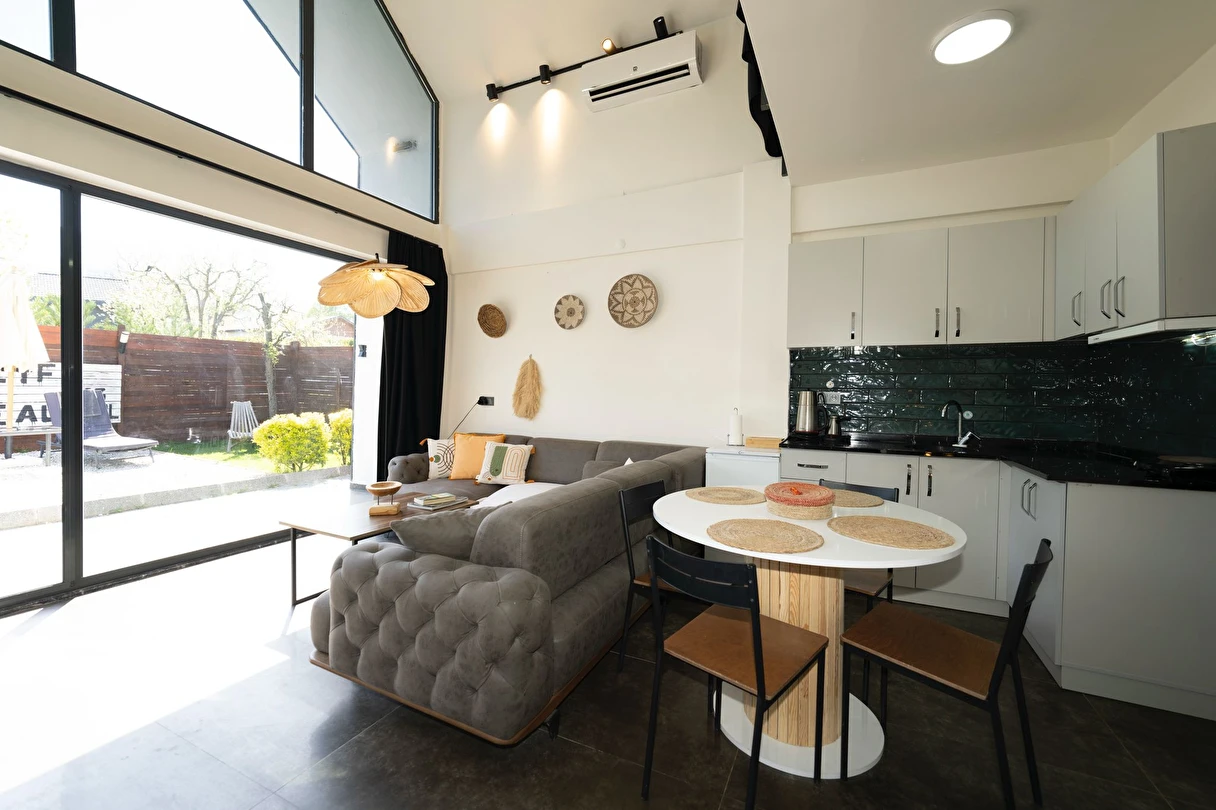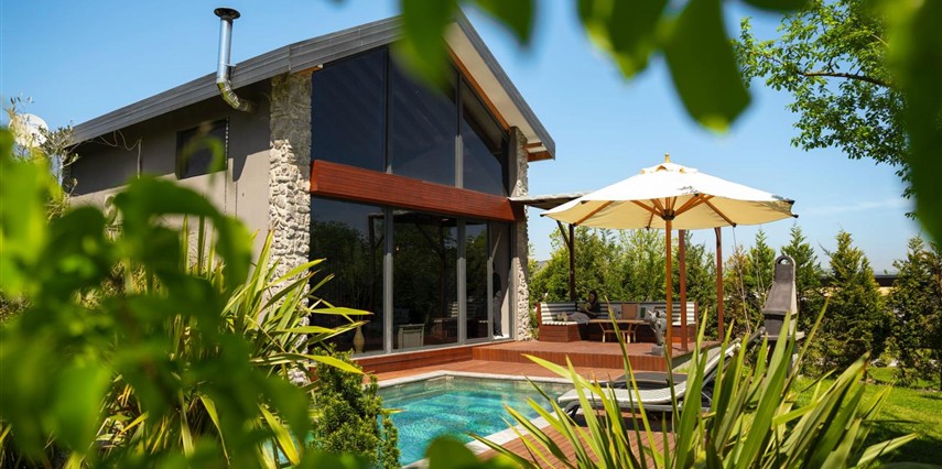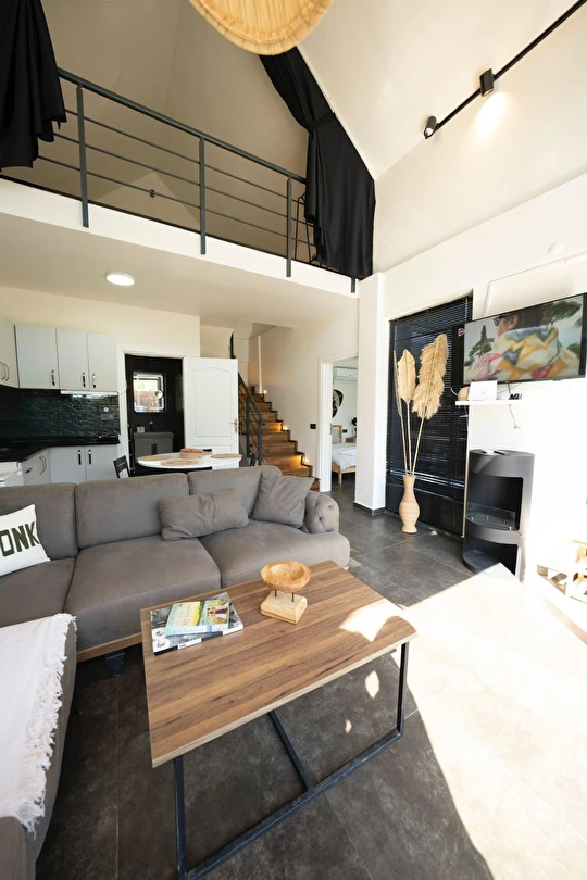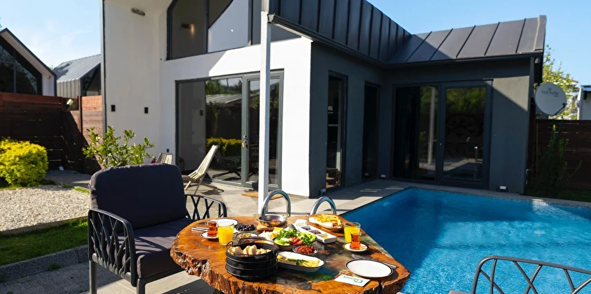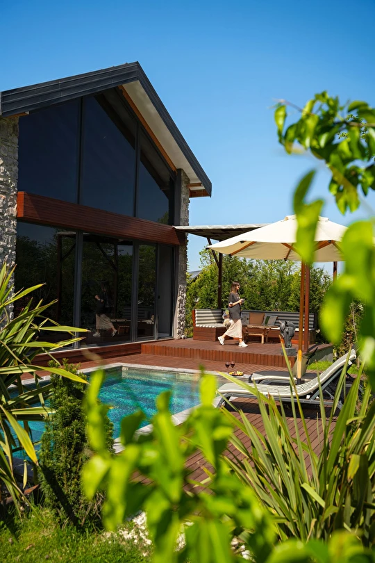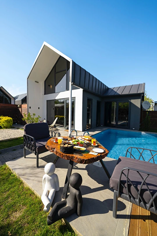 Daha Fazla GösterÖzel kullanım alanlı, sıcak havuzlu bağımsız villalar. Geniş Kullanım alanları, ateş çukuru, özel mutfak ve bahçe oturma alanları.