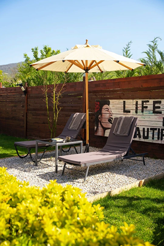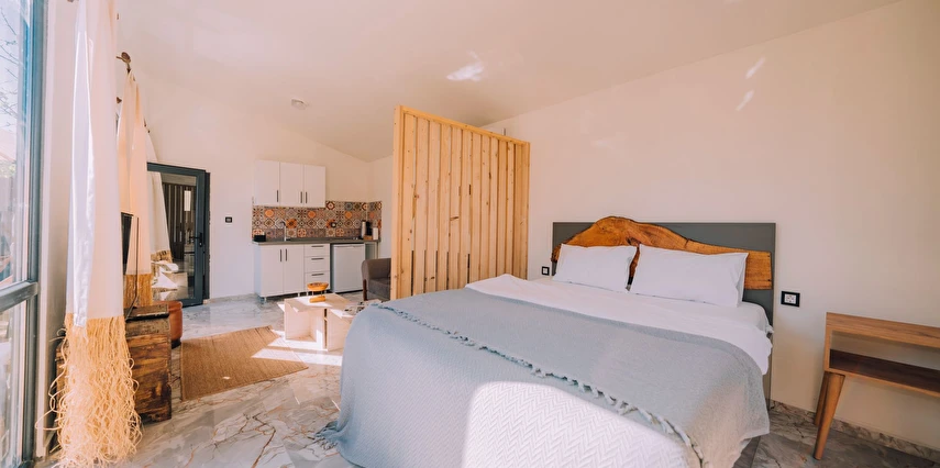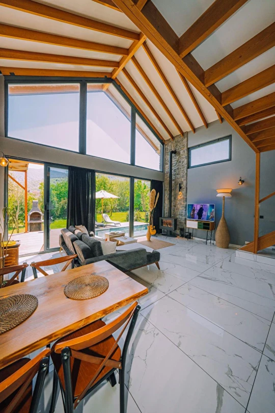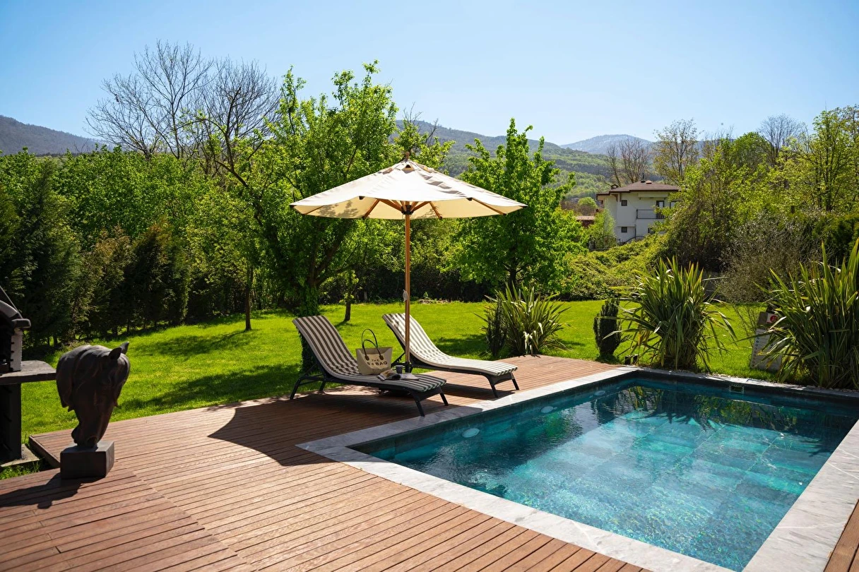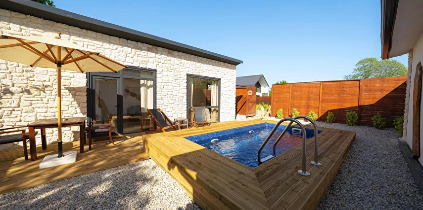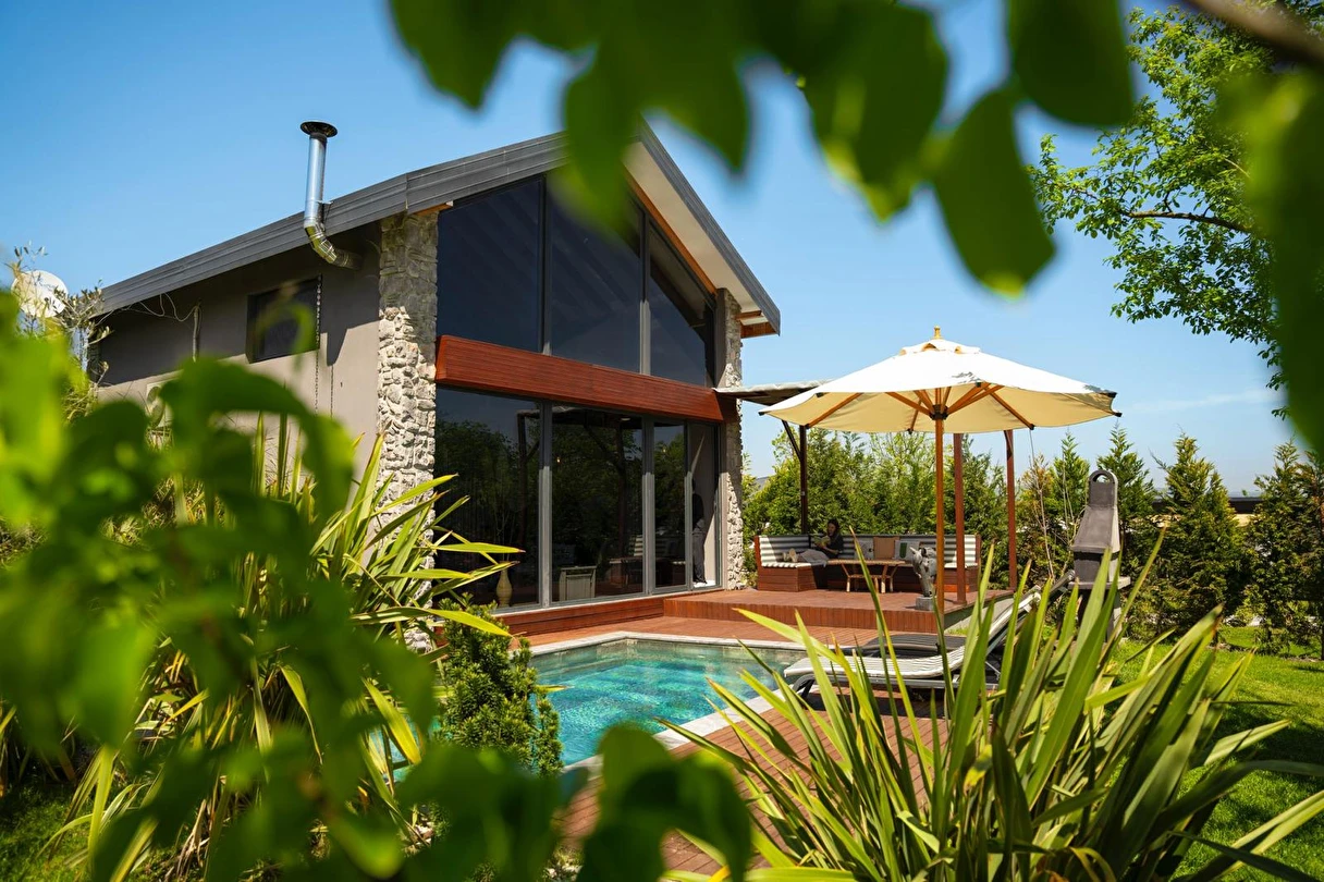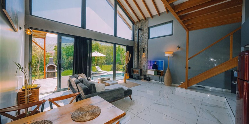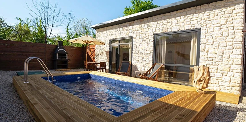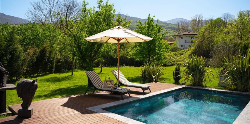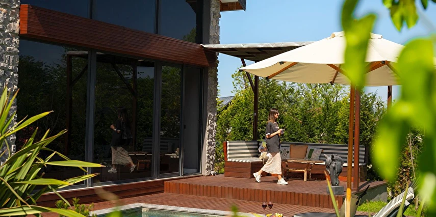 Daha Fazla GösterÖzel kullanım alanlı, sıcak havuzlu bağımsız villalar. Geniş Kullanım alanları, ateş çukuru, özel mutfak ve bahçe oturma alanları.