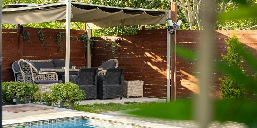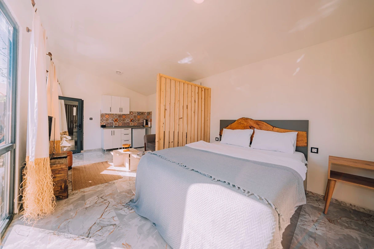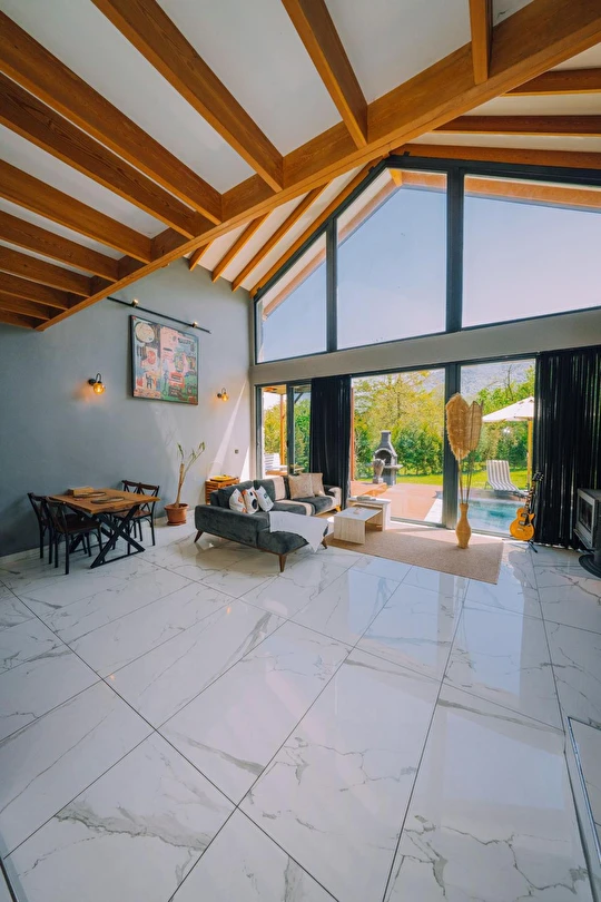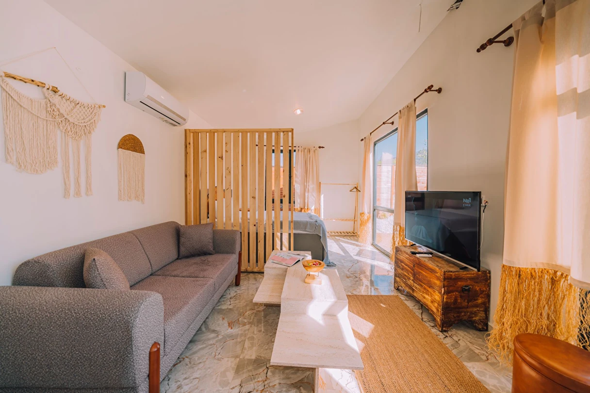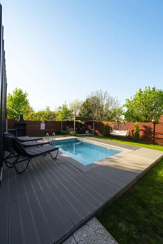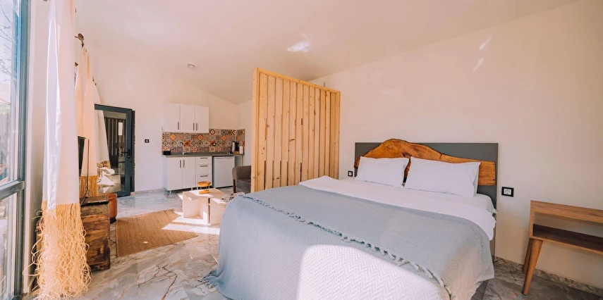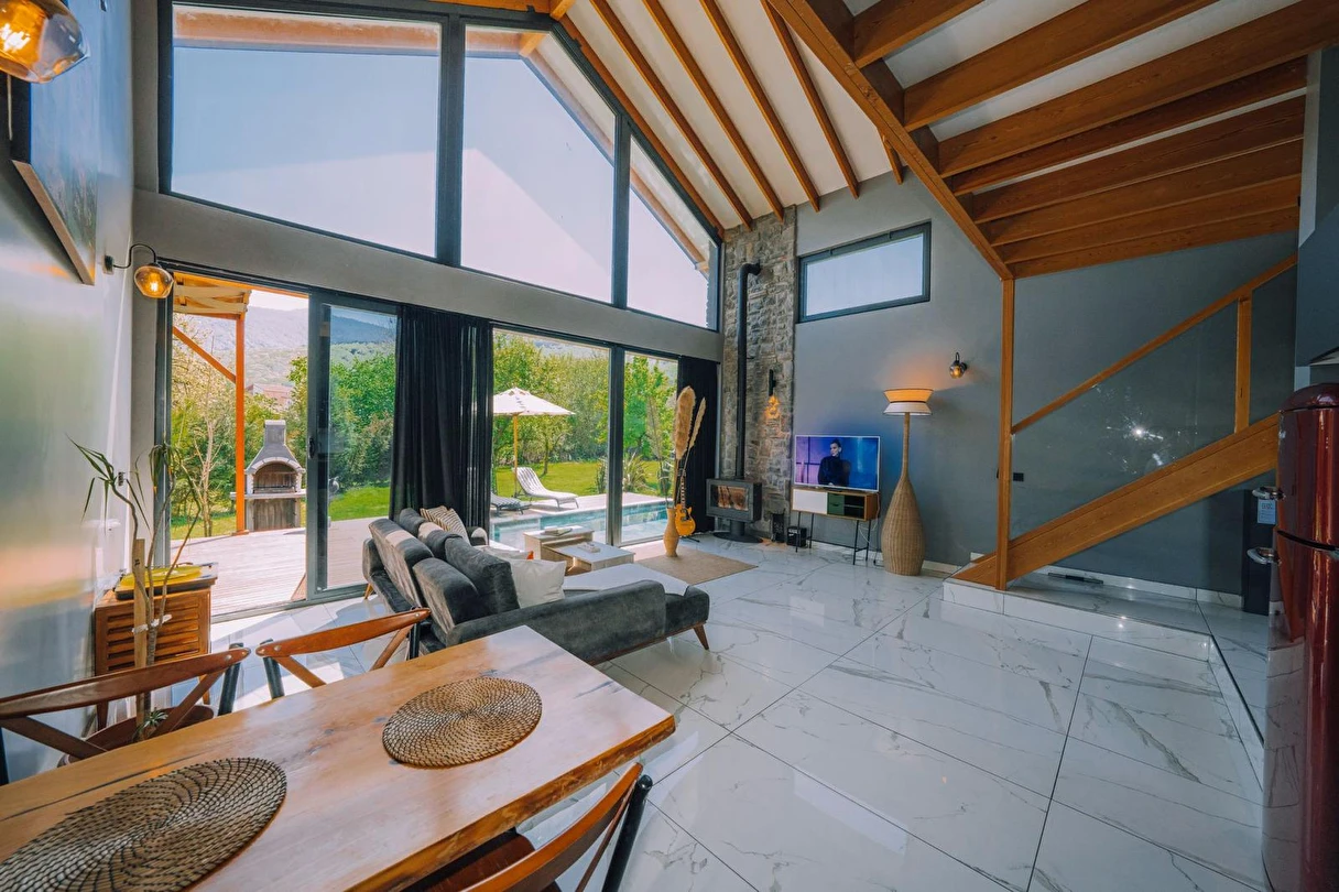 Daha Fazla GösterÖzel kullanım alanlı, sıcak havuzlu bağımsız villalar. Geniş Kullanım alanları, ateş çukuru, özel mutfak ve bahçe oturma alanları.