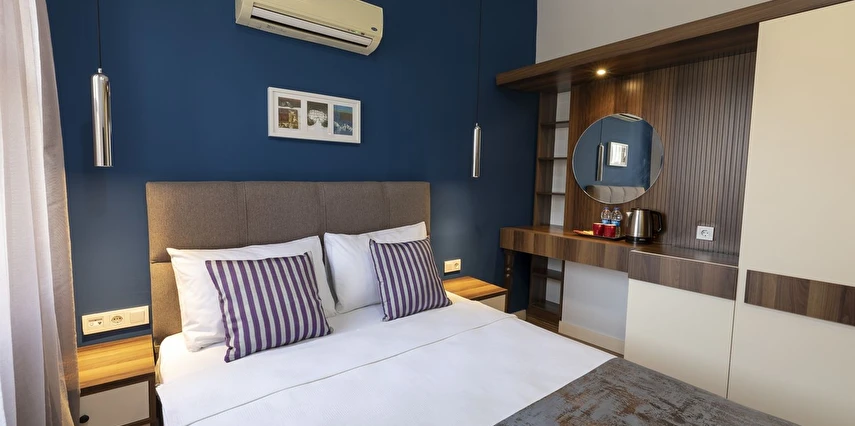 Sanatsal Tasarım: Klasik Kaleiçi mimarisini, Art Deco dokunuşlar ve minimalist bir estetikle yeniden yorumladık. Her köşesi özenle tasarlanmış iç mekanlarımızda kendinizi bir sanat galerisinde hissedeceksiniz.