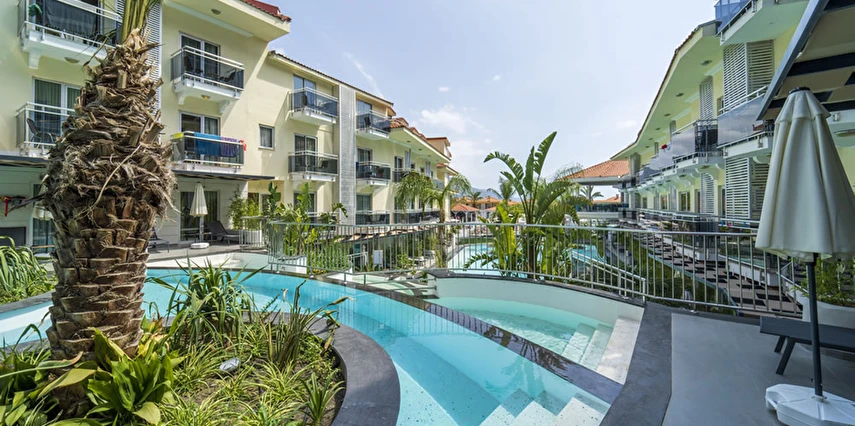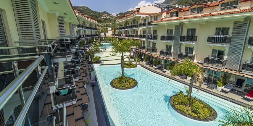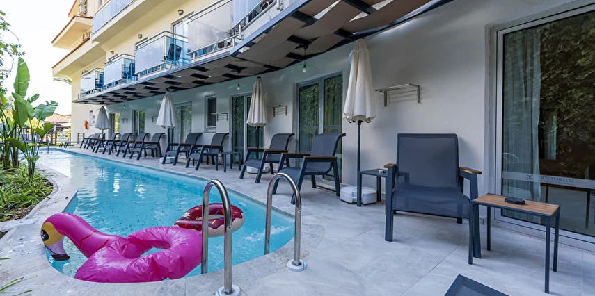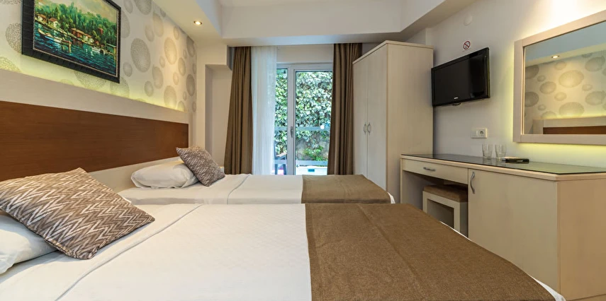 Ölüdeniz Halk Plajına 500 m mesafesi bulunmaktadır, plajda şezlong , şemsiye ve minder ücretlidir.