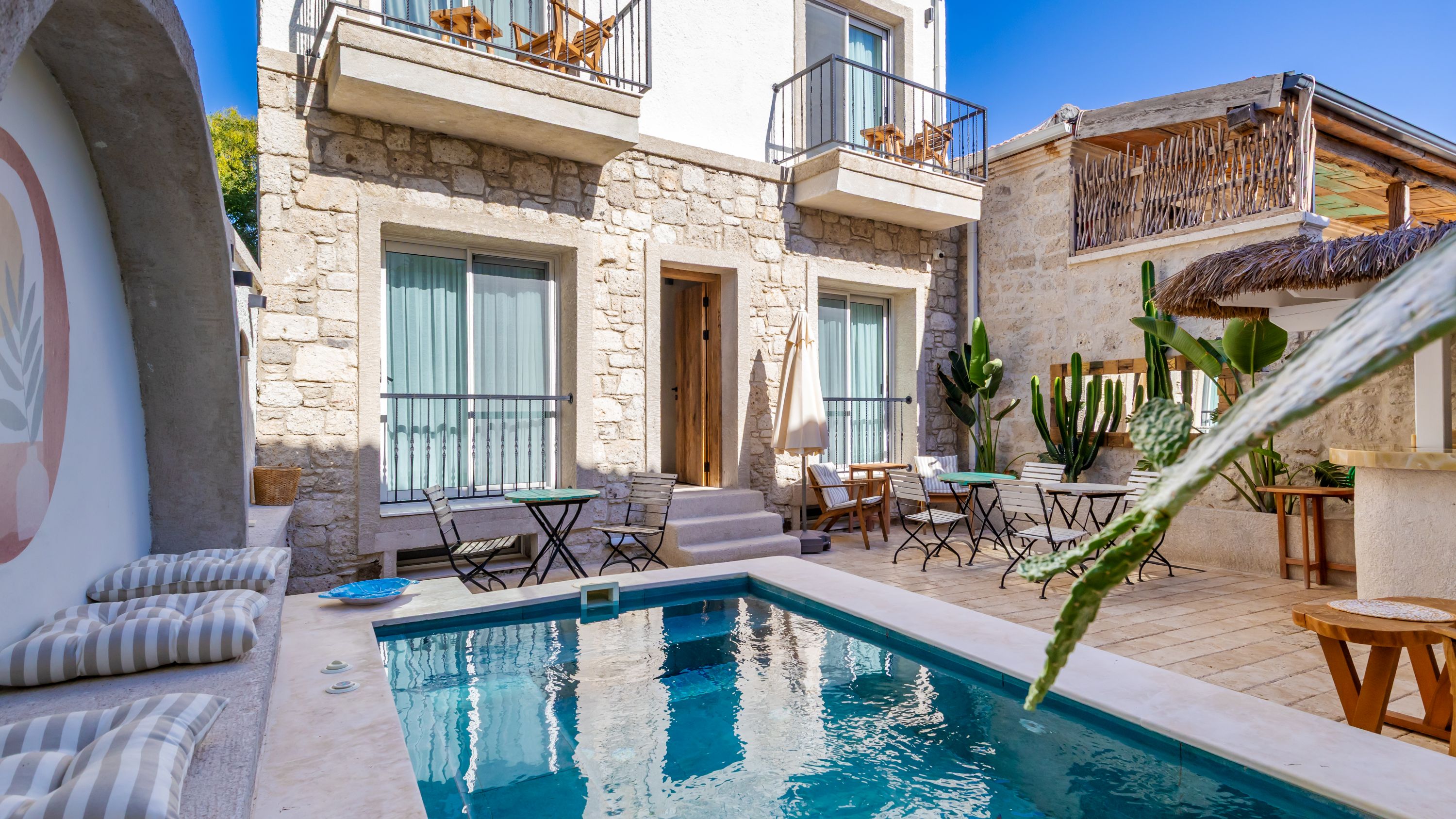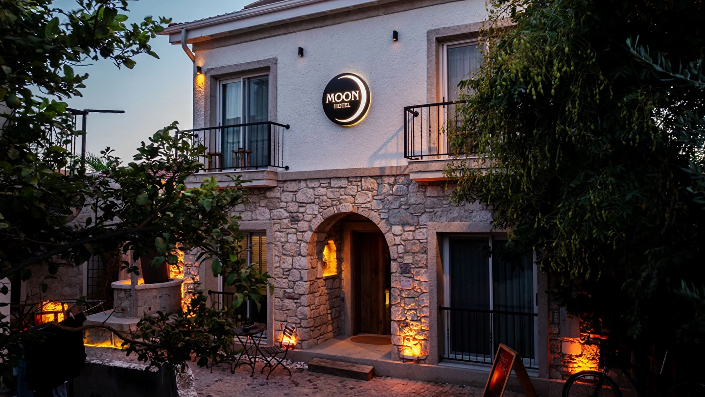 Moon Hotel Alaçatı'ya hoş geldiniz! Alaçatı'nın büyüleyici ruhunun eşsiz konforla buluştuğu yerdesiniz. Geleneksel bir taş evde gizlenmiş, sadece yetişkinlere özel otelimiz, sıcak Türk misafirperverliğini titiz İsviçre kalitesiyle benzersiz bir şekilde harmanlıyor. Titizlikle tasarlanmış odalarımızın çoğu yüksek tavanlara sahip olup daha ferah bir ortam hissi vermektedir. Misafirlerimizin daha konforlu bir uyku uyuması için tüm odalarımızda Avrupa standartlarında ergonomik yataklar tercih edilmiştir. Güne jakuzi ve şık bir bara sahip avlumuzda keyifli yöresel zengin bir kahvaltı ile başlayın.