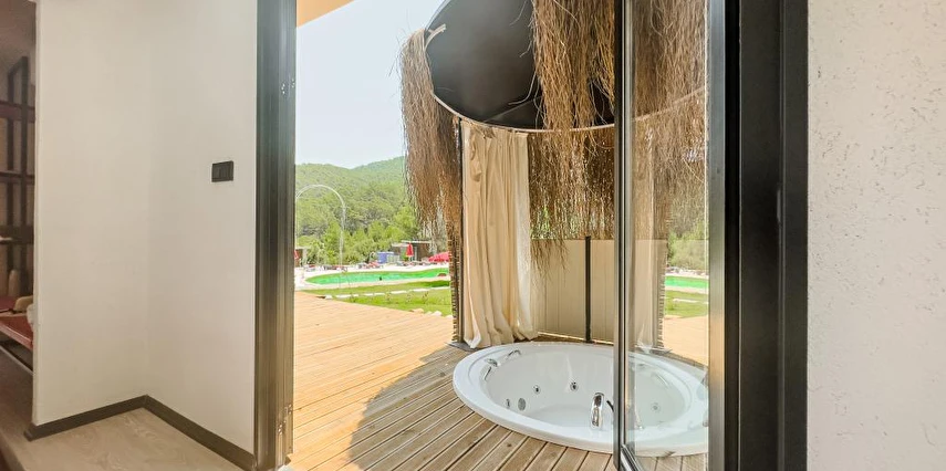 tesisimizde 21 tane bungalow bulunmaktadır. bu evler 1+1 şeklinde olup 25 mertekare genişiğindedir. her odamızın terasında korunaklı kendine ait jakuzisi terası ve bahçesi mevuttur. Misafir memnuniyetini odaklı tesisimizde akşam ve öğlen kullanabilieceğiz ala carte restorantımız mevcuttur.