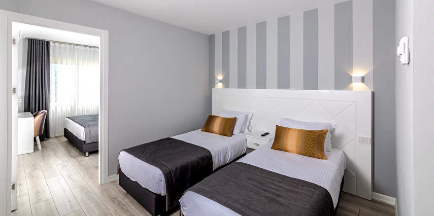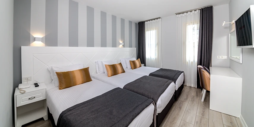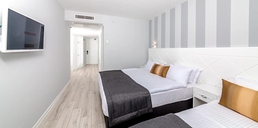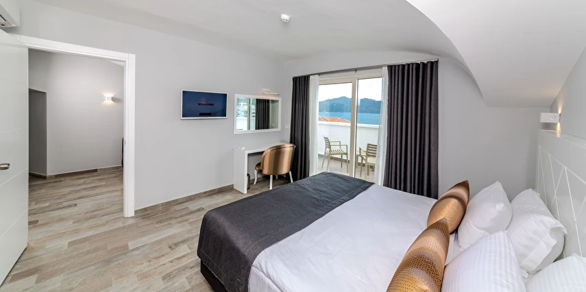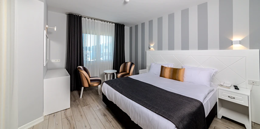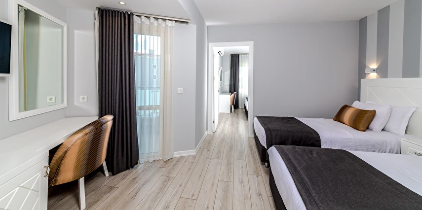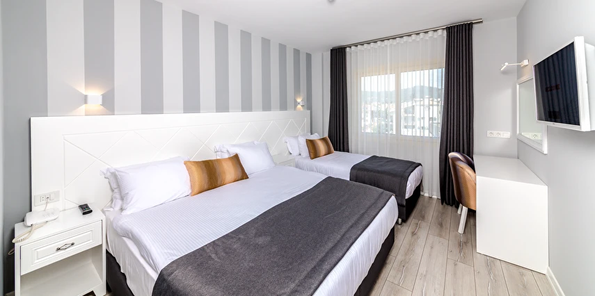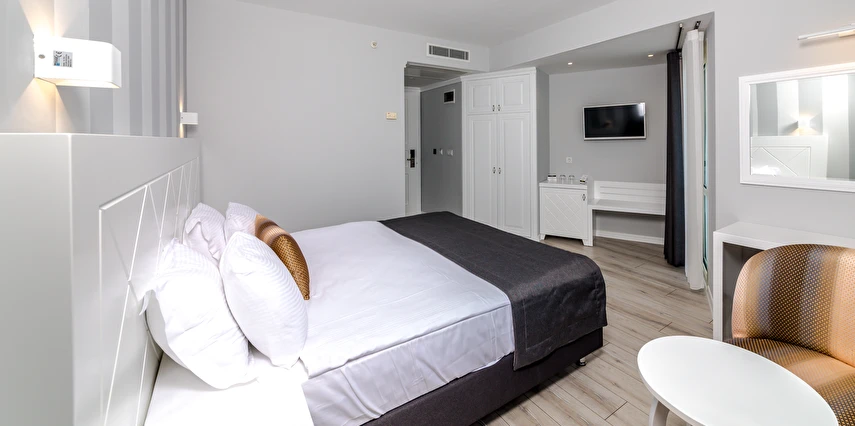 Premium Motto’da 38’i çift kişilik, 16’sı üç kişilik, 10 ‘u aile ve 5’i suit olmak üzere toplam 69 odasıyla misafirlerine hizmet veriyor. Sade ve şık dekoruyla beğeni toplayan otel odalarında bulunan klima, televizyon, minibar ve su ısıtıcısı misafirlere konfor sağlıyor. Süit formatındaki odalar, balkonlu king süit olarak da tercih edilebiliyor. Balkonlu odalardan deniz manzarası da izlenebiliyor.