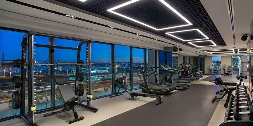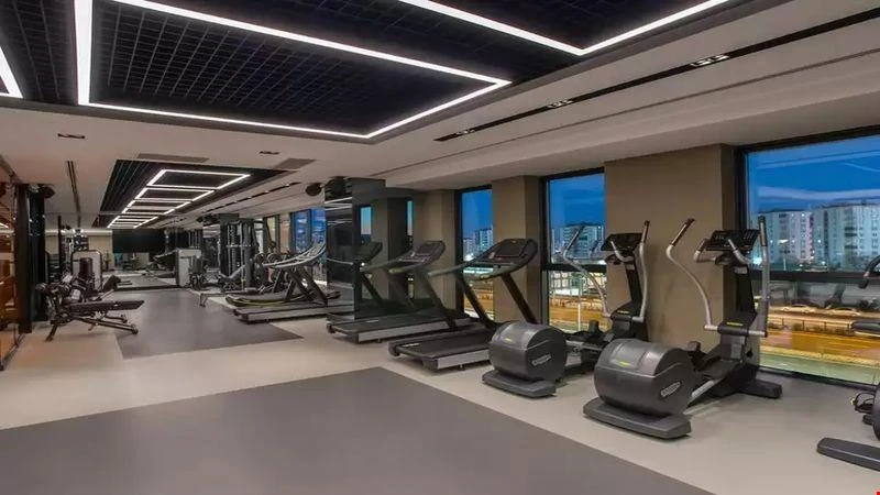 Fitness Merkezi: Kardiyo ve kuvvet antrenmanı ekipmanlarıyla donatılmış bir spor salonu.