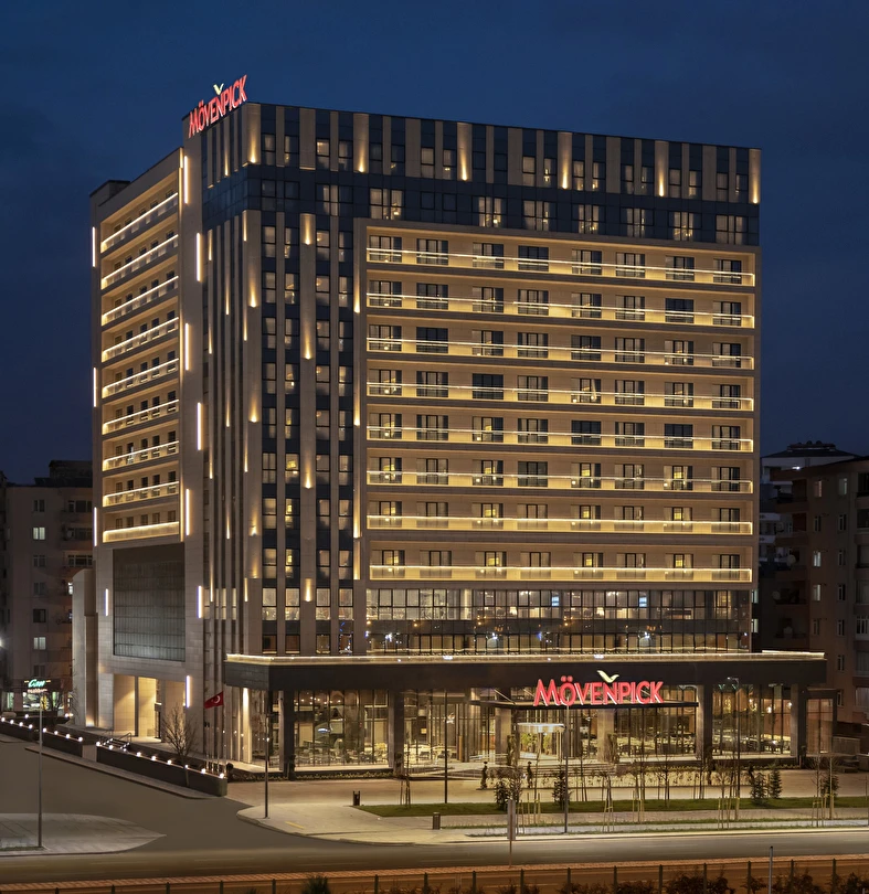 Daha Fazla GösterMövenpick Diyarbakır’da, hem iş seyahati hem de tatil amaçlı seyahat eden misafirlerimizin tüm ihtiyaçlarını karşılayacak toplam 153 oda bulunuyor. Diyarbakır’daki en yeni 5 yıldızlı otel olan Mövenpick Diyarbakır, Diyarbakır havalimanına sadece 4 km mesafede, modern Diyarbakır’ın kalbinde bulunuyor. Diyarbakır organize sanayi bölgesine 8 km uzaklıkta ve iş merkezlerine yürüme mesafesinde bulunan Mövenpick Diyarbakır Otel, hem iş seyahatleriniz hem de turistik amaçlı seyahatleriniz için Accor güvencesiyle Diyarbakır’daki en doğru tercih.