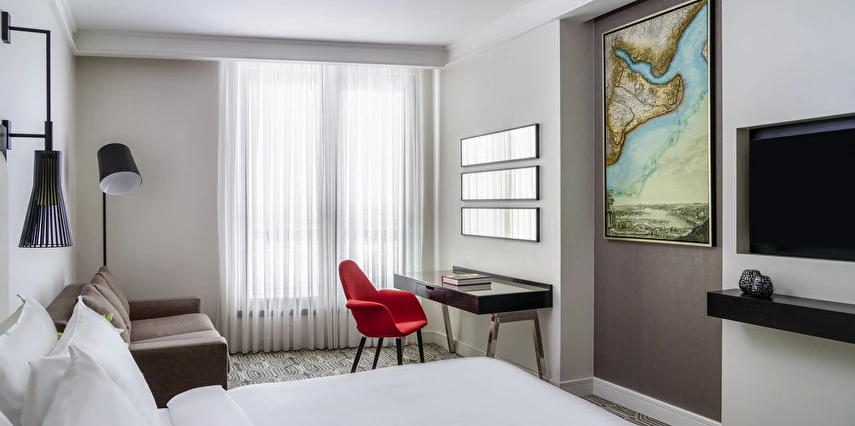 Haliç'in tarihini yansıtan ve en son yeşil bina teknolojisini içeren çağdaş bir tasarıma sahip olan İstanbul'daki bu butik otel, etkileyici sahil manzarası sunan toplam 136 geniş otel odası, gurme lezzetler sunan bir restoran, gençleştirici bir Spa ve son teknoloji ürünü beş toplantı odası sunmaktadır.