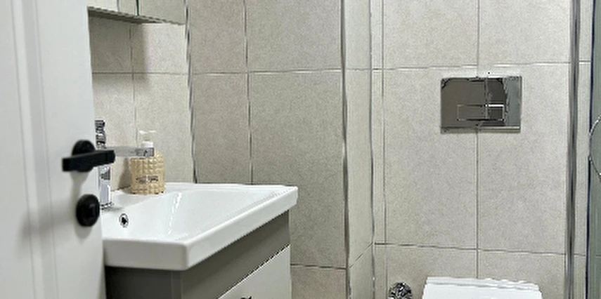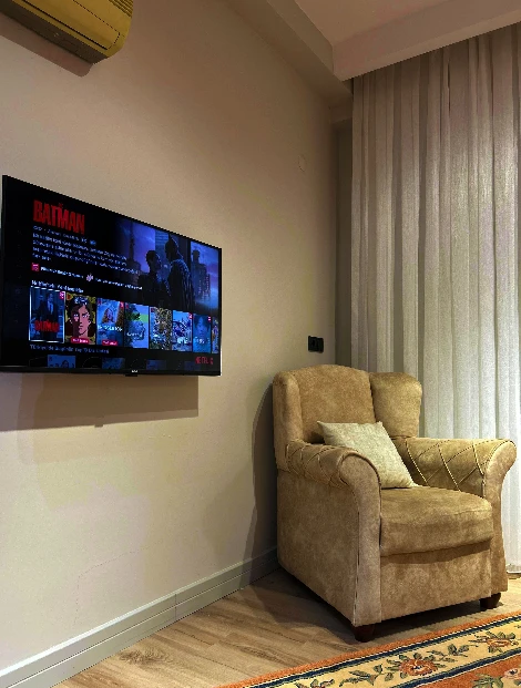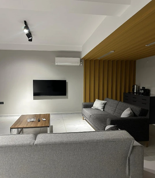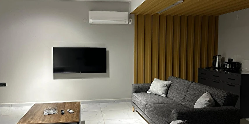 - Dev Ekran Akıllı TV, 7/24 sıcak su, çamaşır makinesi, bulaşık makinesi, fırın, ocak, davlumbaz seti, küçük ev aletleri, mutfak malzemeleri ve yemek masası takımı bulunmaktadır.