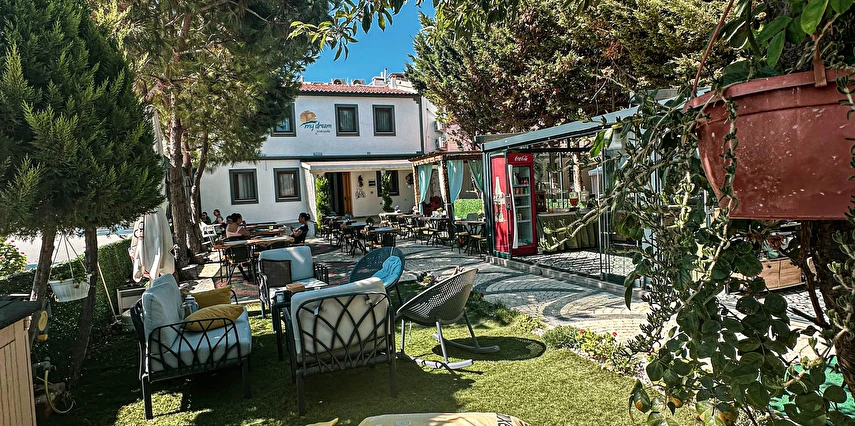 Ege’nin incisi Bozcaada’da, denize sadece birkaç dakikalık mesafede yer alan My Dream Bozcaada, modern konforu adanın büyüleyici doğası ve tarihi dokusuyla buluşturuyor. Şık ve ferah odaları, güneşle dolu terası ve sıcak, samimi hizmeti ile konuklarına unutulmaz bir tatil deneyimi sunuyor. Gününüzü adanın masmavi koylarını keşfederek veya yakınındaki ünlü şaraphanelerde yerel şarap tadımı yaparak geçirebilir, akşamları ise Polente Feneri’nde büyüleyici gün batımını izleyebilirsiniz. İster romantik bir kaçamak, ister ailece keyifli bir tatil arıyor olun, My Dream Bozcaada huzur, lezzet ve keşfi bir arada sunan ideal adresiniz.