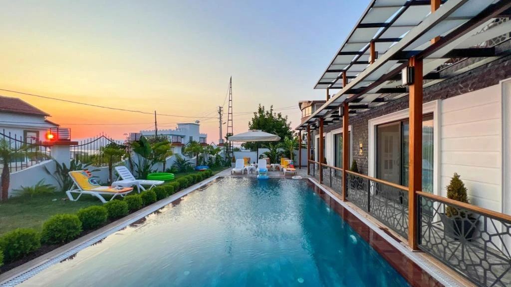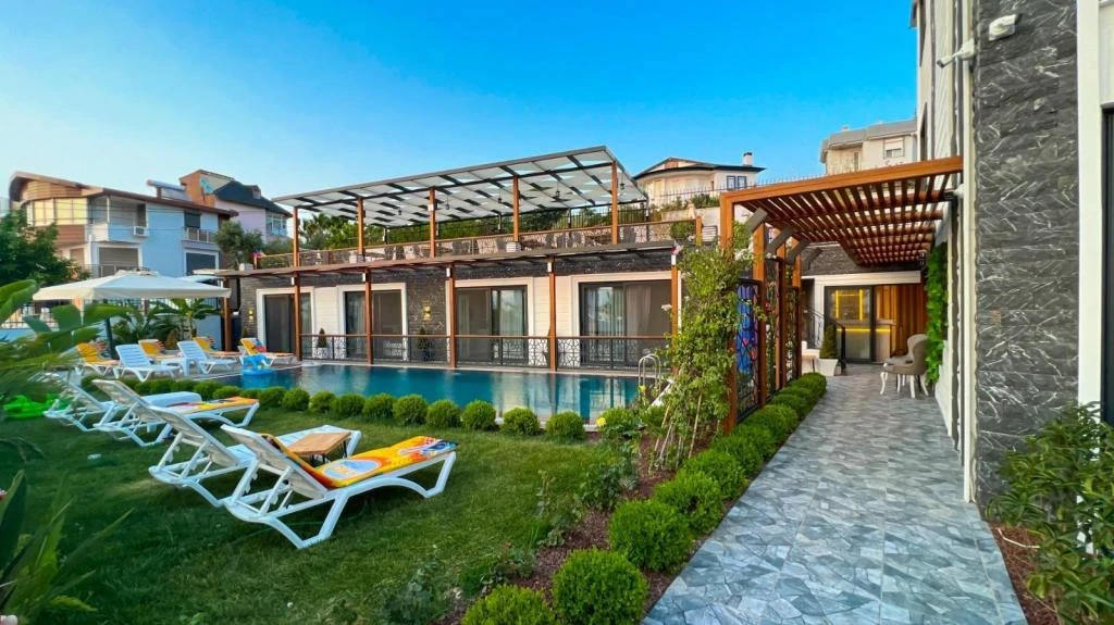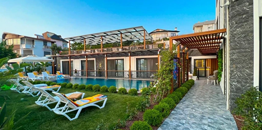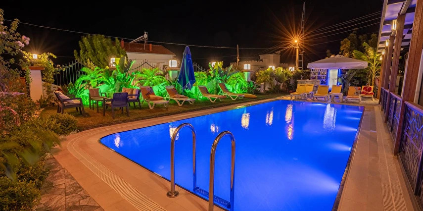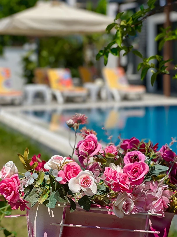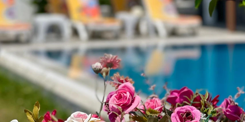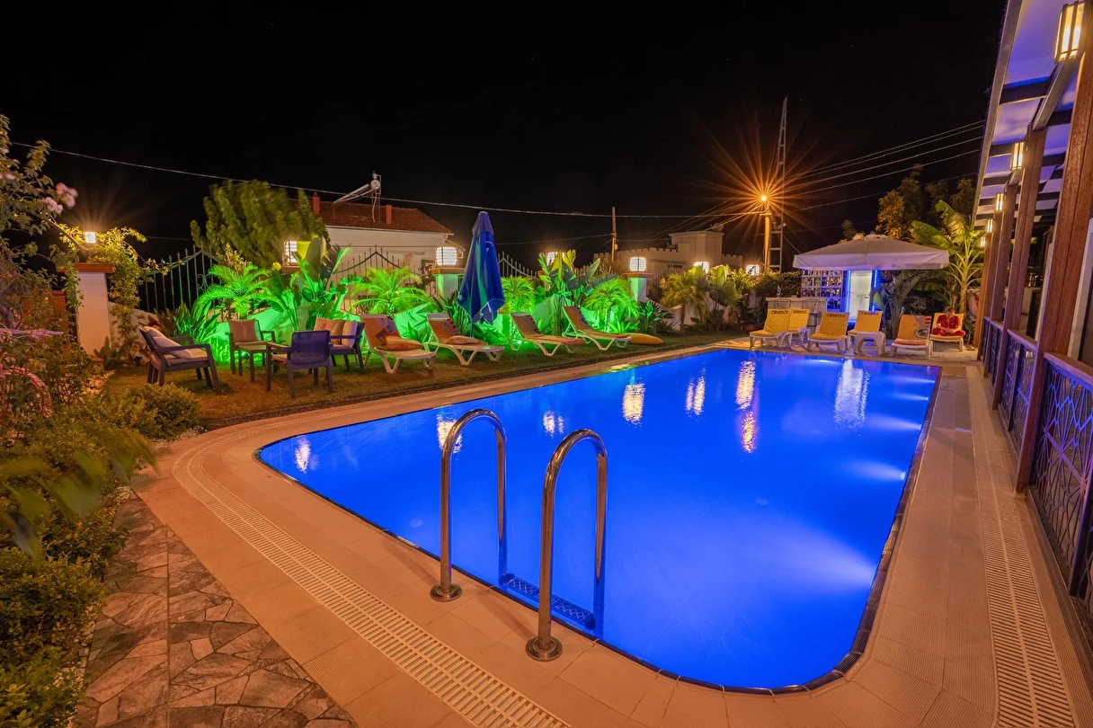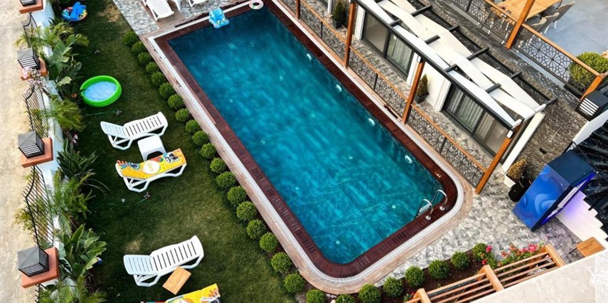Tesisin bahçesinde bulunan yüzme havuzu, misafirlere keyifli anlar yaşatıyor