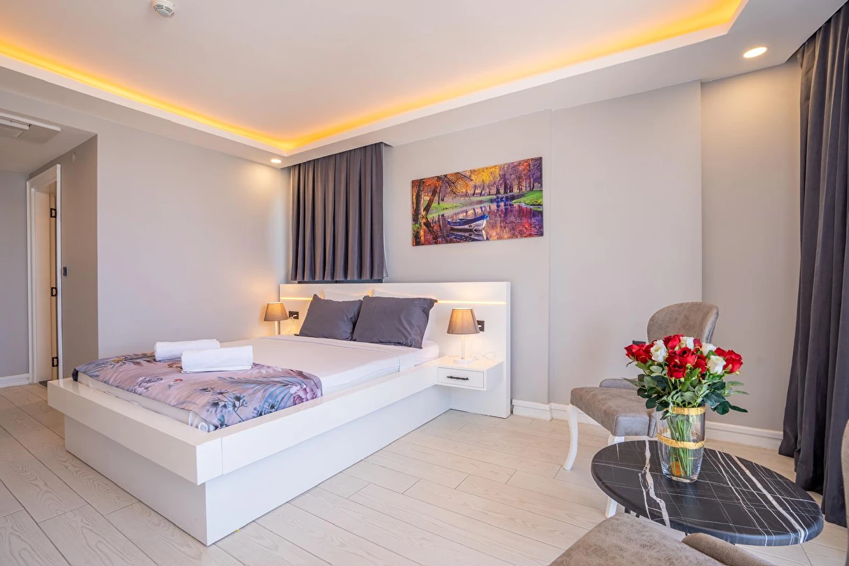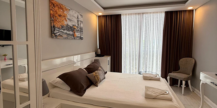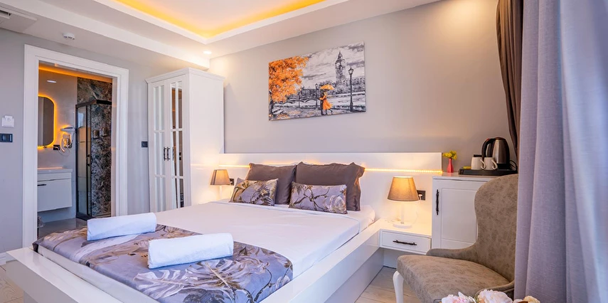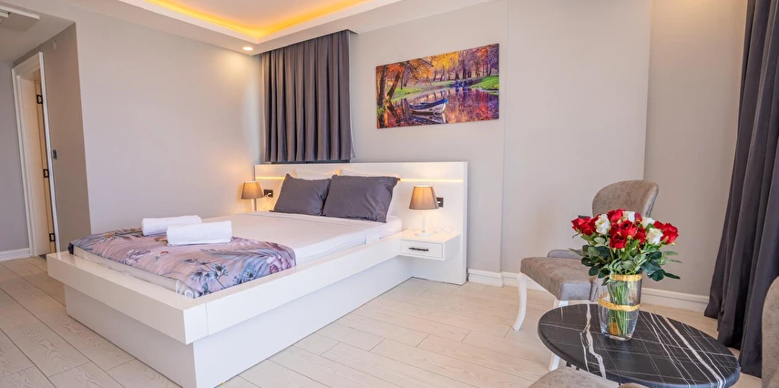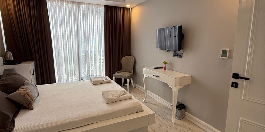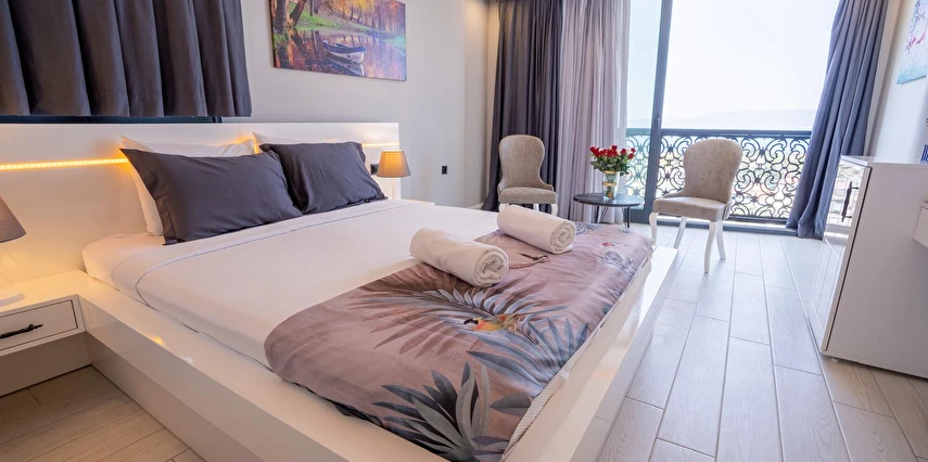 Tesis 18 oda ile hizmet veriyor. Tesiste 9 adet deniz manzaralı, 4 adet havuz manzaralı ve 5 adet kara manzaralı oda bulunuyor. Sade şekilde dekore edilmiş odalarda misafirlerin ihtiyaçlarına yönelik olarak; klima, TV, mini buzdolabı, çay ve kahve seti, buklet malzemeleri gibi imkanlar yer alıyor.