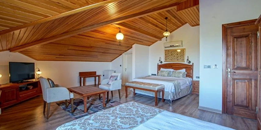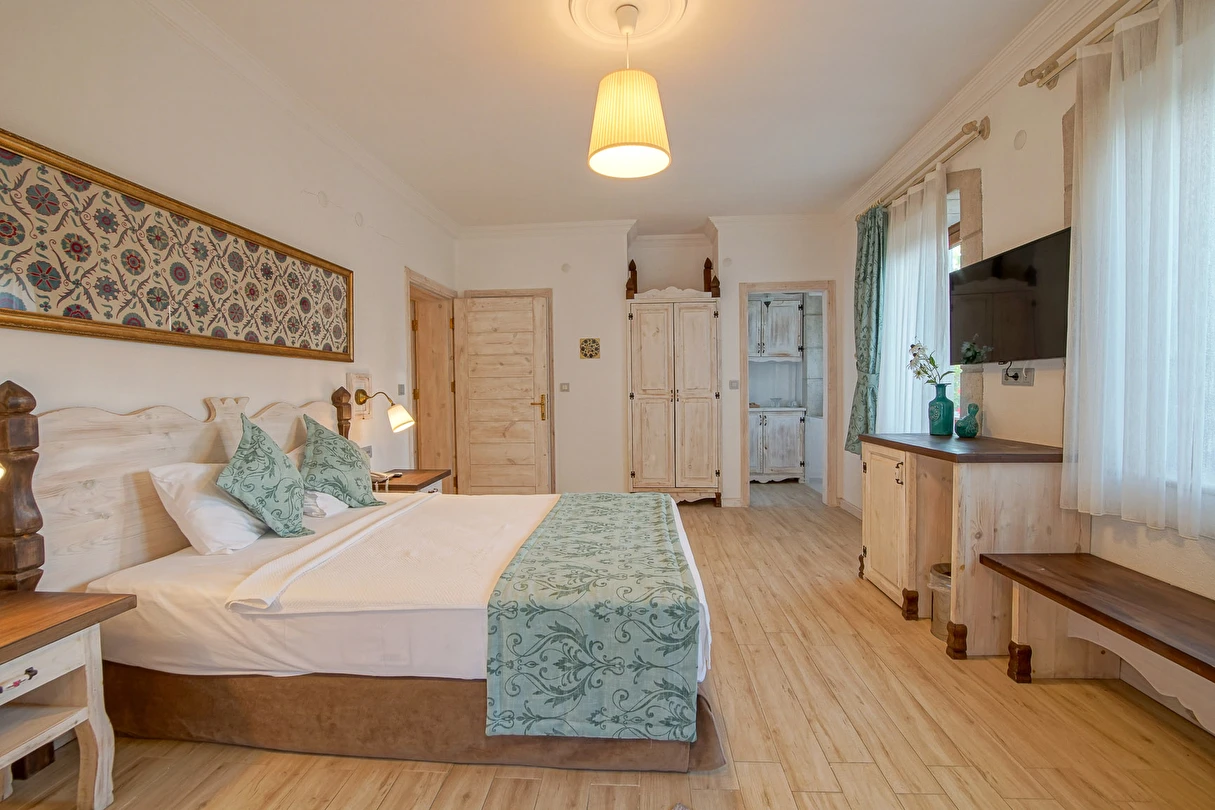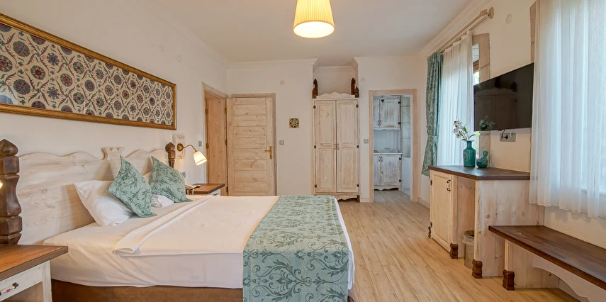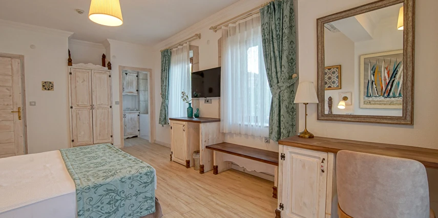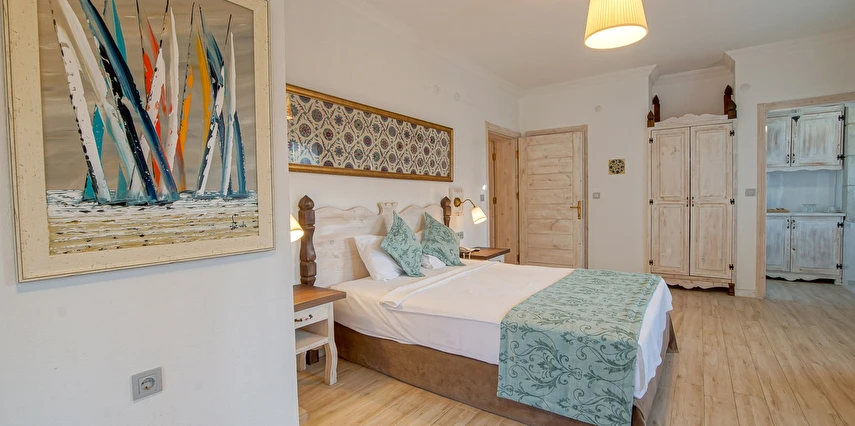 15 Standart, 8 deluxe ve 2 adet bahçeli suit, toplamda 25 odalı butik otelimiz, oda ve kahvaltı sistemiyle çalışmakta olup, bünyesinde À la carte restorantı, unutulmaz kokteyller içebileceğiniz bahçe barı, yetişkinler için yüzme havuzu ile en iyi hizmet verme arzusundadır. 2020 yılında tamamıyla yenilenen otelimiz, güler yüzlü personelimiz ile sizlere çok özel tatil seçeceği sunmakta.