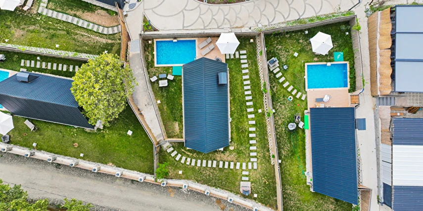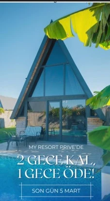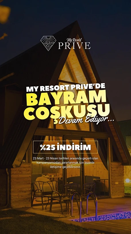 Daha Fazla GösterMy Resort Prive, yeşil ve mavinin buluştuğu Sapanca’nın doğal güzelliği içinde, kusursuz konfor anlayışıyla oluşturulmuş, göl ve orman manzaralı bungalov ve villa evleriyle misafirlerini ağırlayarak, benzersiz kalite anlayışı ile hizmet veriyor. Doğallığı merkezine alan bu şık tesis özel alanlarıyla, ailecek yapılacak tatillerin gözdesi olmayı misyon edinmiş durumda. Müstakil mahremiyette özel sıcak havuz imkanıyla 4 mevsim tatiller planlayabilir, geniş bahçelerinde dostlarınızla eğlenebileceğiniz barbekü partileri verebilirsiniz. Yatak odanızda sizi karşılayacak olan panoramik manzaralı jakuzinizde günün yorgunluğunu atabilir, oturma odanızda şömine keyfi yaparak ailenizle unutulmaz bir tatil deneyimi yaşayabilirsiniz.