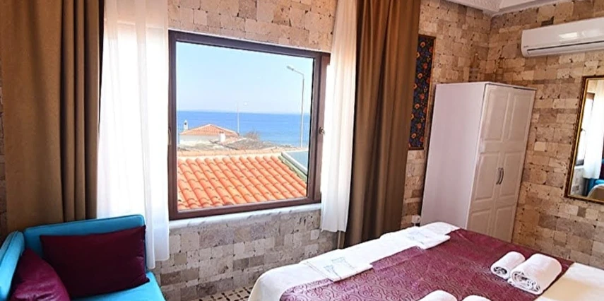 Bozcaada'nın tarih, kültür ve denizi ile iç içe olduğu merkezinde, feribot yolculuğunuzu sonlandırdığınız iskeleye 100 mt uzaklıkta romantik, şirin ve rengarenk rum sokaklarının hemen kıyısında deniz ve kale manzaralı 150 yıllık yeni restore edilmiş bir rum evinde, Mylos otelde siz misafirlerimizi konuk etmekten mutluluk duyacağız.