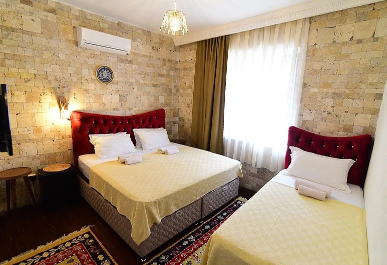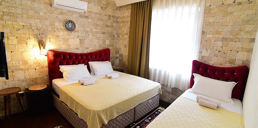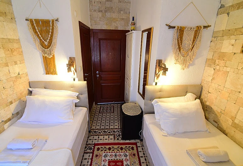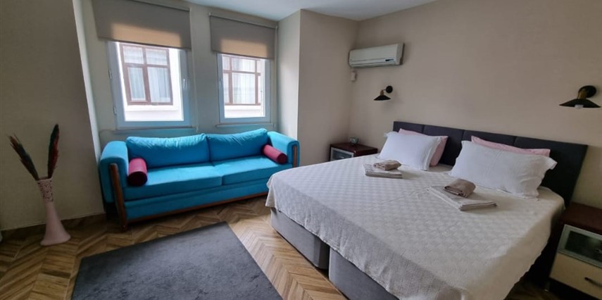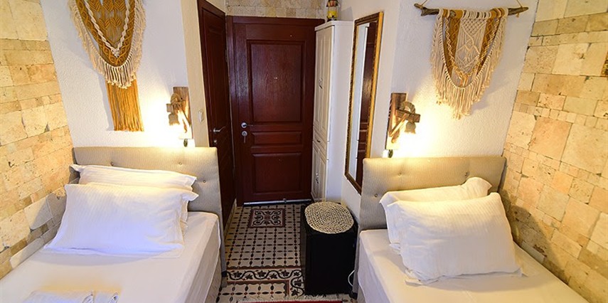 Oda - kahvaltı (kahvaltı hizmetimiz saat 09:30 - 11:30 arasında deniz kenarındaki restoranımızda verilmektedir) konsepti ile hizmet vermektedir.