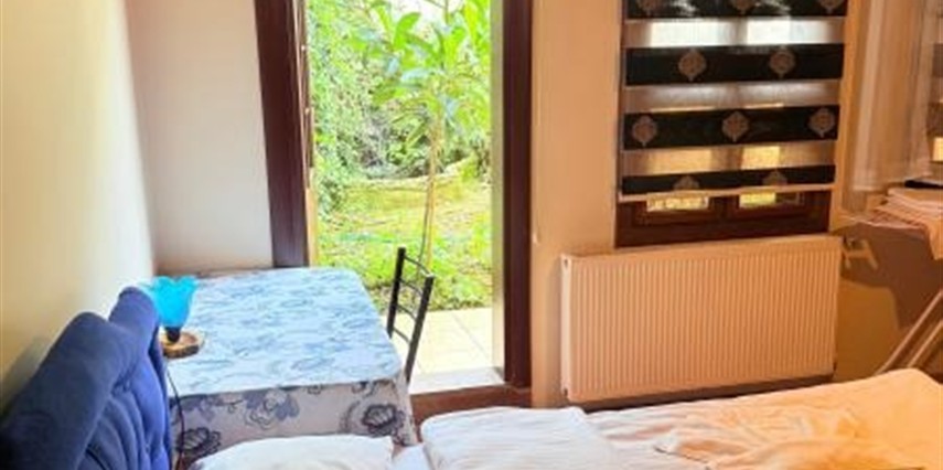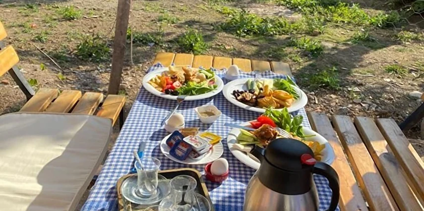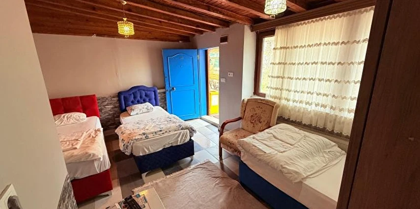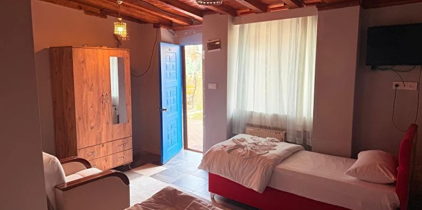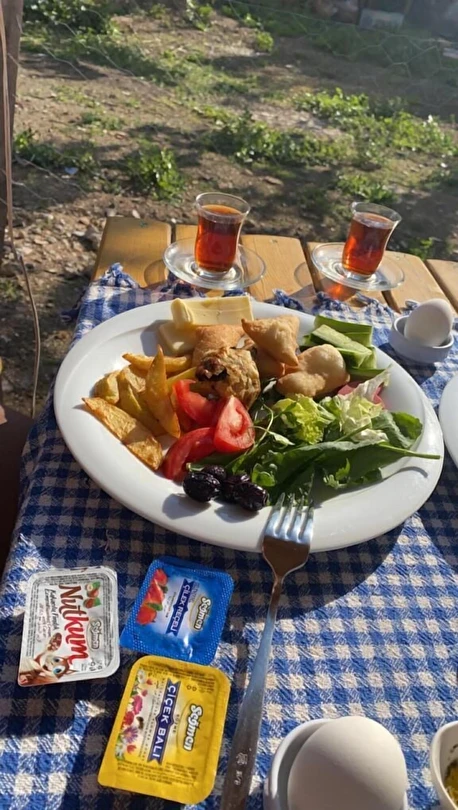 Daha Fazla GösterYaklaşık 700 metrekarelik geniş bir bahçemizde, dut, yemiş, limon ağaçları arasında sizleri ağırlıyoruz… Yaz mevsiminde domates, biber… Ve tabii ki özgürce dolaşan 20-30 civarında tavuğumuz. Yumurtalarımız taze, kahvaltıda masalarınıza geliyor.