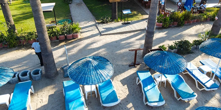 Plaj hizmeti; Yaklaşık 45 metre civari kum sahilde otel misafirlerinin kullanımı için yeterli şezlong ve şemsiyemiz bulunmaktadır. Plaj kullanım saatleri 09:00-18:00 arası olup, mevsim şartlarına göre saatlerde bazen değişiklik yapılabilmektedir. Plaj kullanımı için havlu hizmeti verilmemektedir.