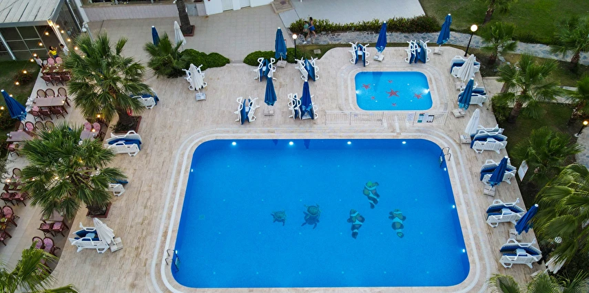 Tesiste 1 adet açık yetişkin 1 adet açık çocuk havuzu bulunmaktadır. Havuz kullanım saatleri 09:00-18:00 arası olup, mevsim şartlarına göre saatlerde bazen değişiklik yapılabilmektedir. Havuz etrafı geniş güneşlenme alanı bulunmakta ve güneşlenme alanı gün boyu güneş almaktadır. Havuz kullanımı için havlu hizmeti verilmemektedir.