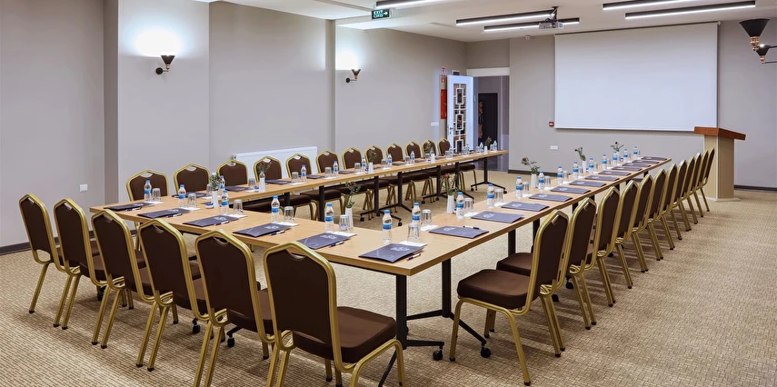 Daha Fazla GösterŞehrimizin önemli yatırımlarından biri olan “N'Ala Otel Sakarya” %100 Türk sermayesi ile gerçekleştirilmiştir. Konuklarımızın en konforlu şekilde konaklamasını sağlamak amacı ile, çok itinalı bir şekilde, mimari yapısı dizayn edilen otelimizde; hijyen, güvenlik, kalite ve konforu ön planda tutan güleryüzlü hizmet anlayışımız, leziz ve bol çeşitli restaurant ve cafe hizmetlerimiz, toplantı ve davet salonu organizasyonlarımız ile taçlanmaktadır.